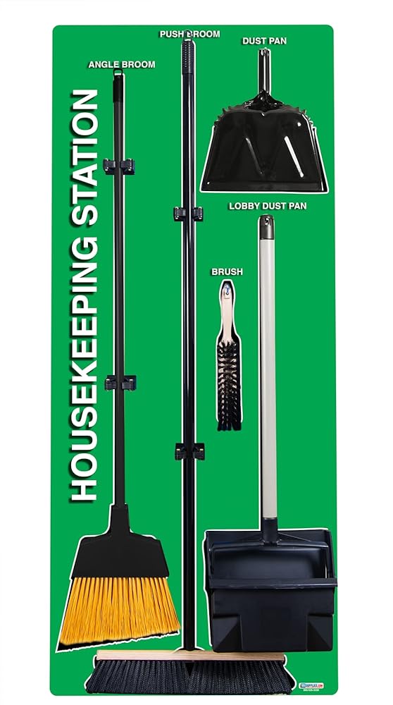 Our Housekeeping Stations will quickly allow you to visually organize your brooms and housekeeping supplies. (Comes with Broom Kit)