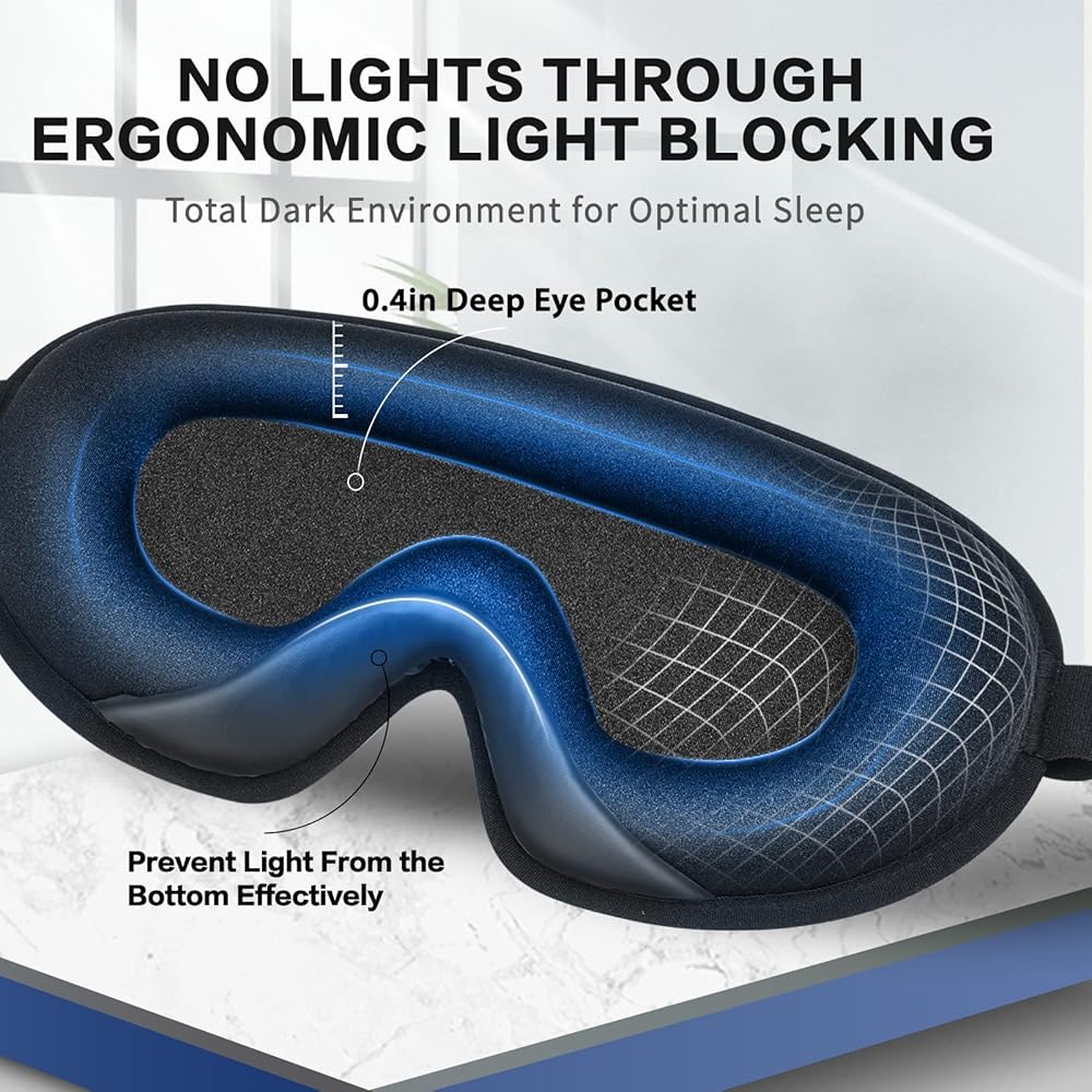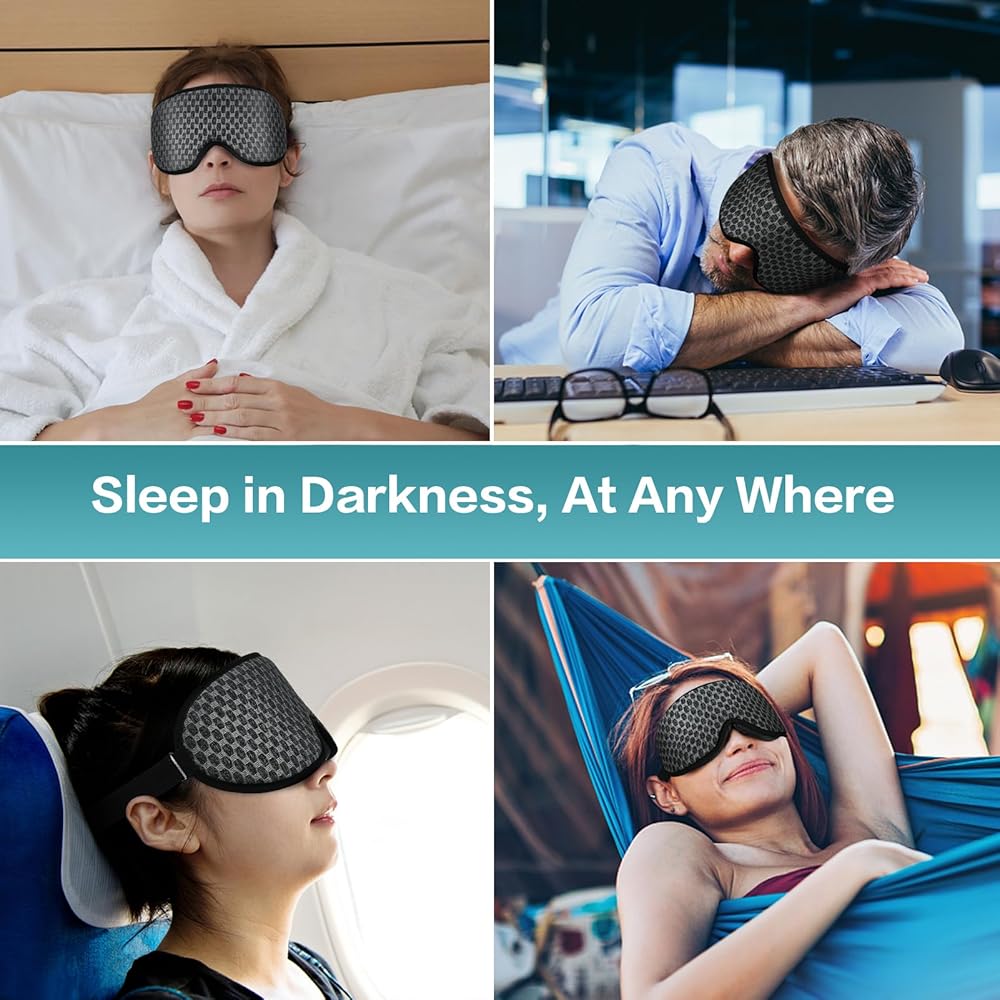 Total Light Blockage: Our eye mask for sleeping is expertly designed to perfectly conform to your face's contours. It features an invisible nose piece for seamless shading and 100% light blockage, creating an environment of complete darkness that promotes longer and deeper sleep.