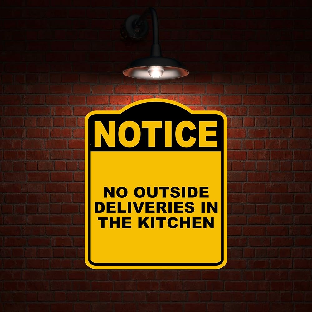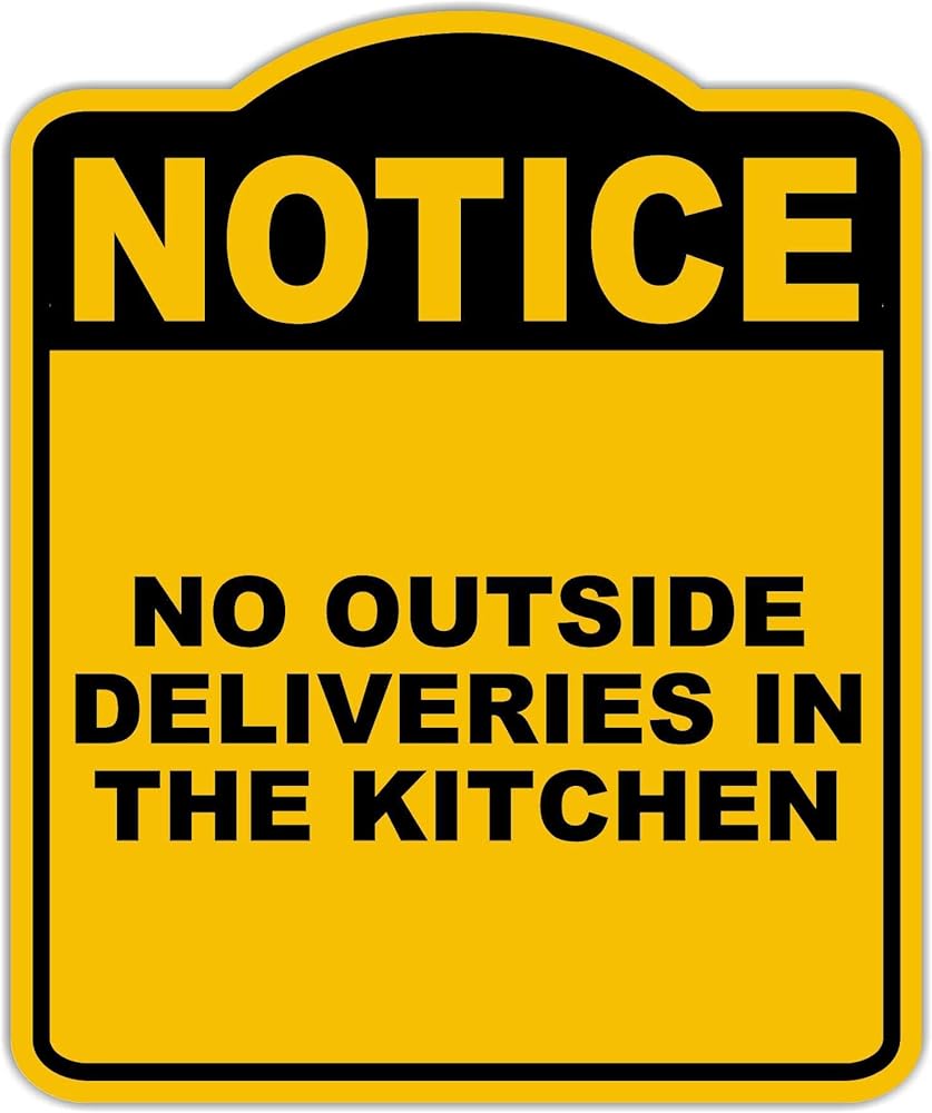 لا توجد عمليات تسليم خارجية في المطبخ لاحظ علامة مركب من الألومنيوم الأسود الصفراء 8.5 × 10 بوصات