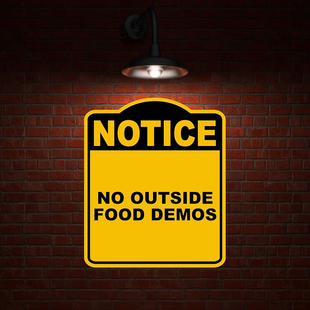 لا توجد عروض توضيحية للأطعمة الخارجية، لافتة مركبة من الألومنيوم باللون الأصفر والأسود مقاس 8.5 × 10 بوصة