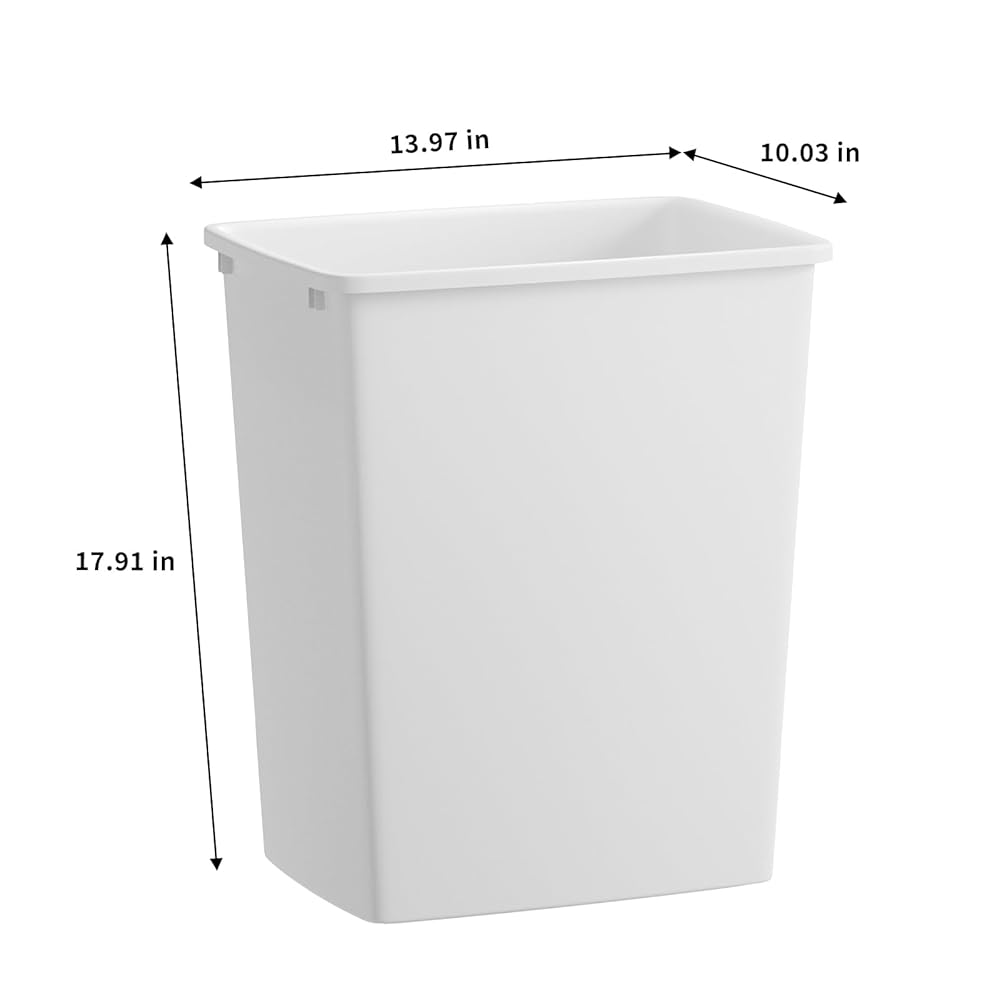 من السهل التنظيف-من السهل الحفاظ على هذه القمامة النحيفة ويمكن مسحها بسهولة نظيفة وتجفيفها بالهواء للاستخدام على المدى الطويل. حزمة محتويات: 2 35QT علب القمامة البلاستيكية. كل علبة أسفل القمامة تحت الحوض هي 13.91 بوصة ، وعمق 10.03 بوصة ، وارتفاع 17.91 بوصة