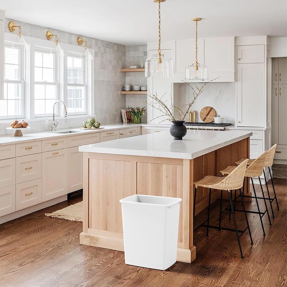 سعة عالية - يمكن أن تحمل القمامة 35QT سعة كمية كبيرة من القمامة ، مما يقلل من عدد أوقات التنظيف ، للحمام وغرفة النوم والمطبخ ومساحة المكتب. يمكن للمطبخ المطبخ يمكن أن يجعلها ملف تعريف خفيف الوزن متعدد الاستخدامات
