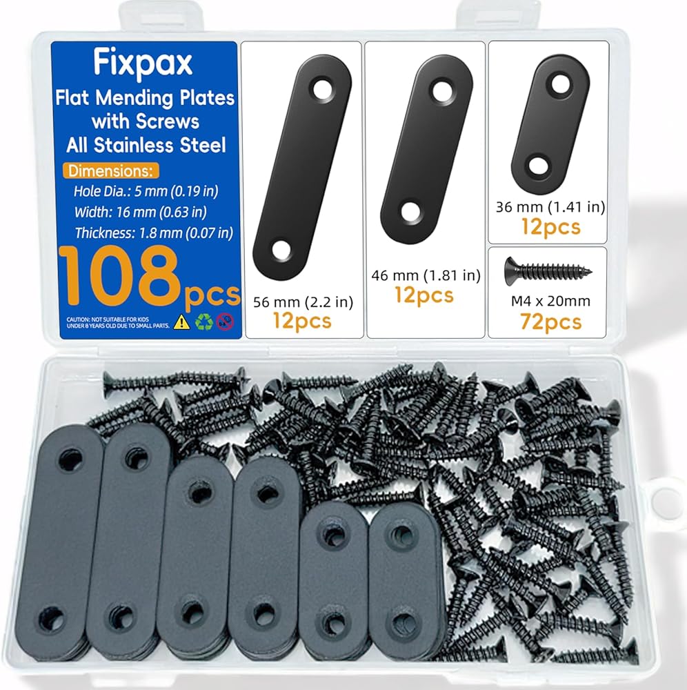 【111 مساءً مجموعة إصلاح】 تشمل 31 أقواس مستقيمة من الفولاذ المقاوم للصدأ في 5 أحجام و 80 مسامير مطابقة M4 × 20 - جاهزة للاستخدام في الخشب والأثاث وتعزيز الإطار. لوحة ميلا من الصلب عملية وجميع في واحد تم تعيينها لاستخدام المنزل وورشة العمل.