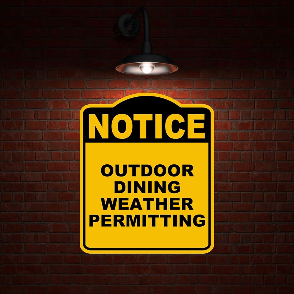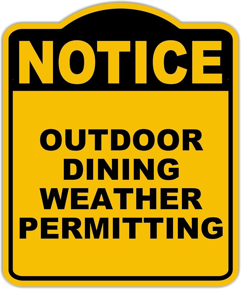 إشعار السماح بالطقس لتناول الطعام في الهواء الطلق، لافتة مركبة من الألومنيوم باللون الأصفر والأسود مقاس 8.5 × 10 بوصة