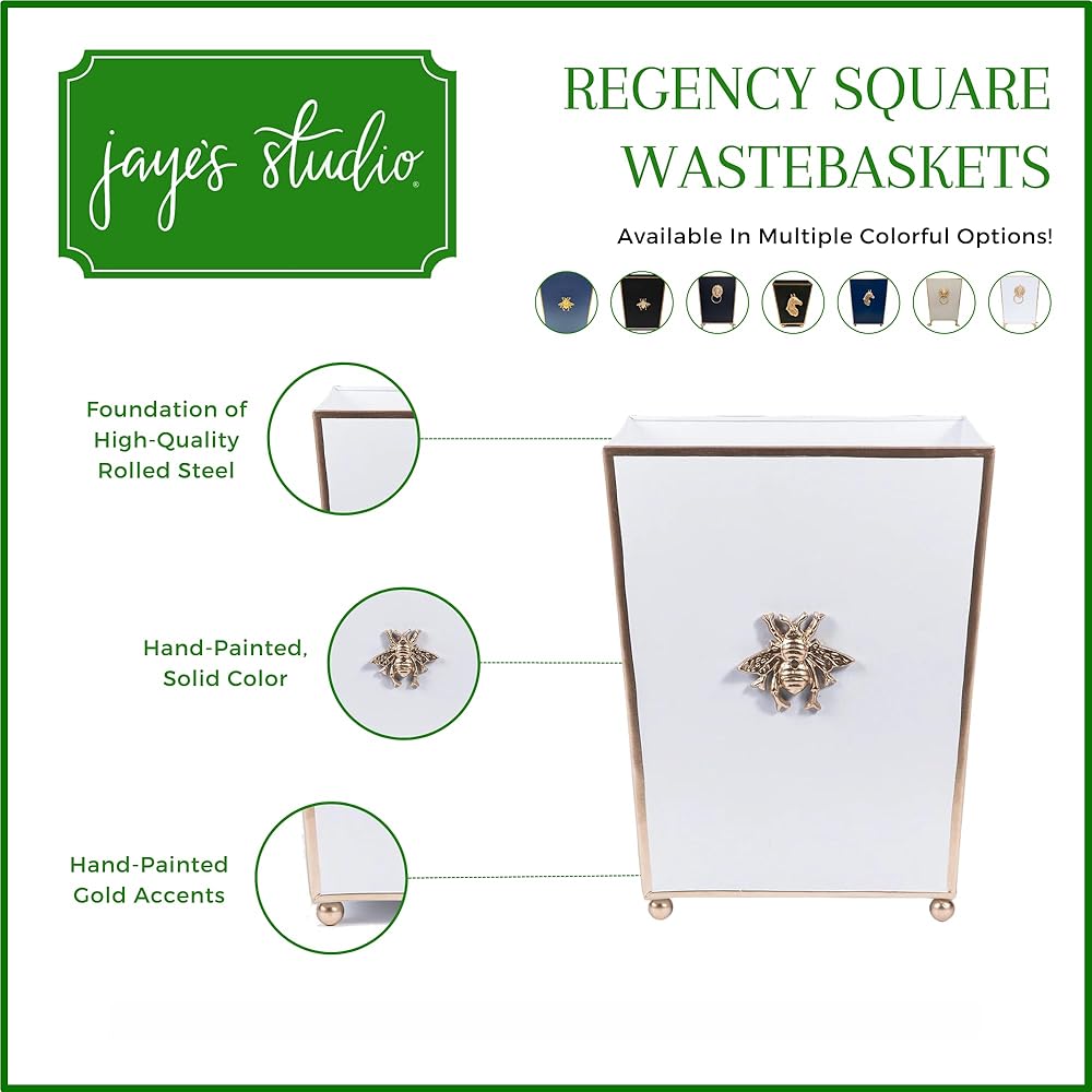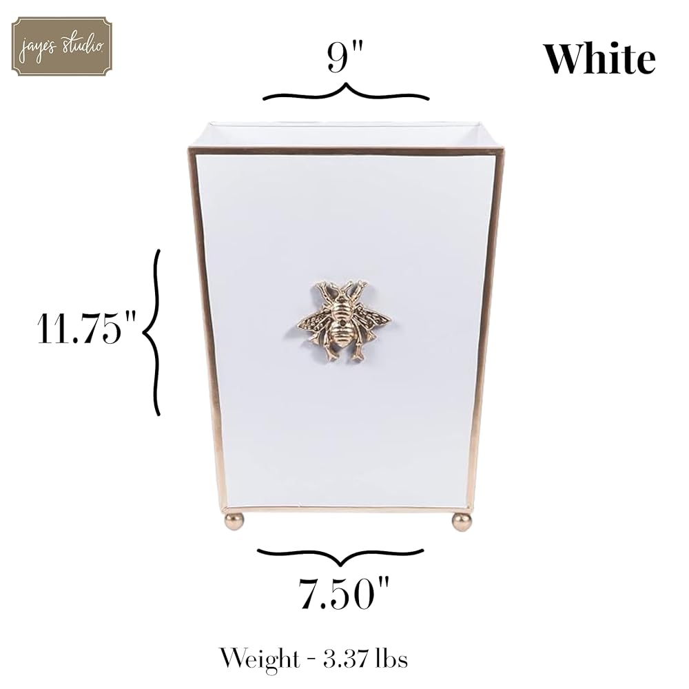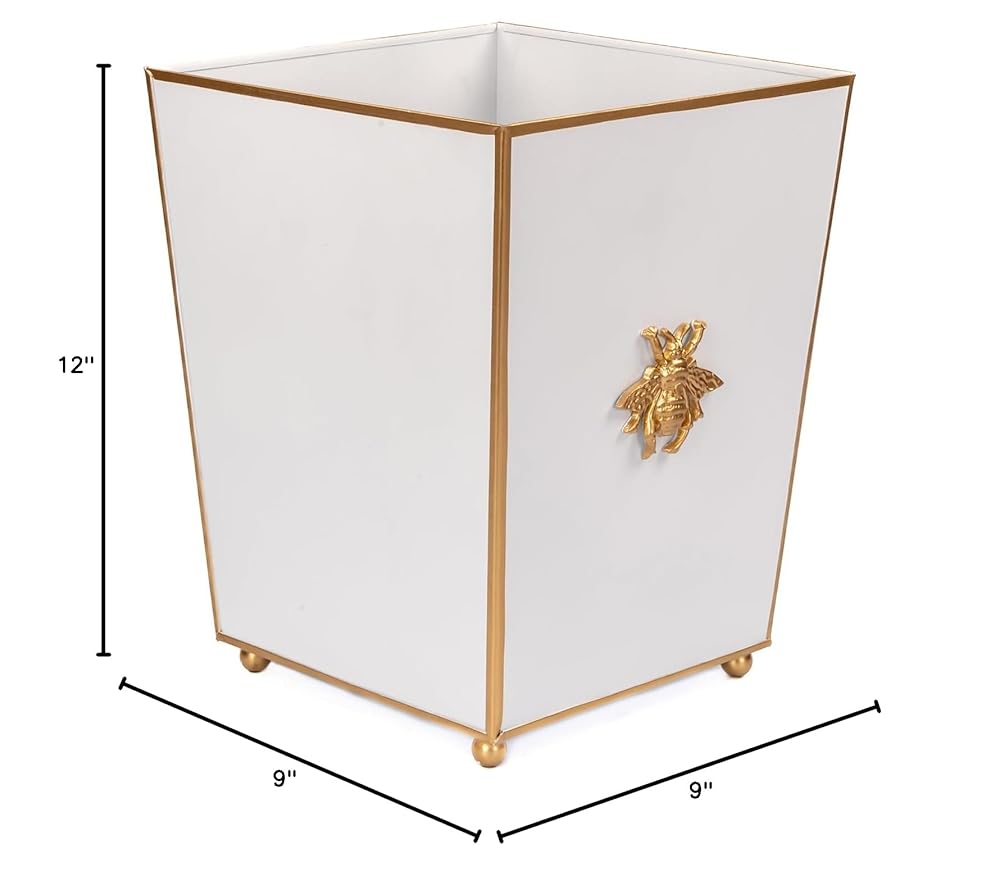 طباعة ونمط | يعد خط Regency لاستوديو Jaye من سفن النفايات الزخرفية المربعة وسيلة رائعة لإثارة بعض التطور والأناقة في مكتبك أو الحمام أو غرفة النوم. هذا صندوق الأبيض أو النفايات أو القمامة غير اللامع هو معدن مع انتهاء من النحل الذهبي ويزين بتصميم خالد. إنها إضافة رائعة إلى أي مساحة ، توفر لمسة فريدة من الأسلوب الشخصي.