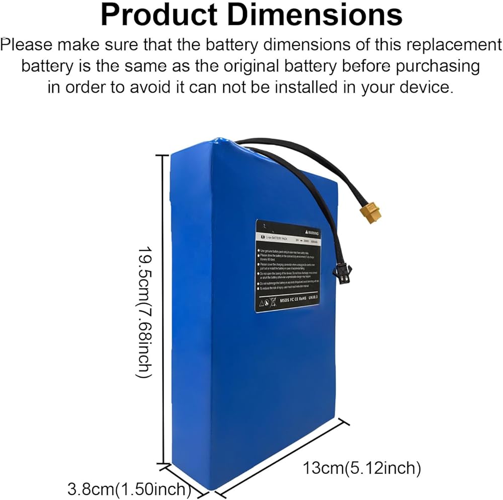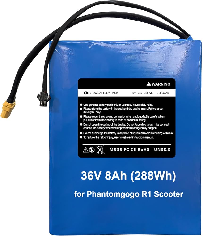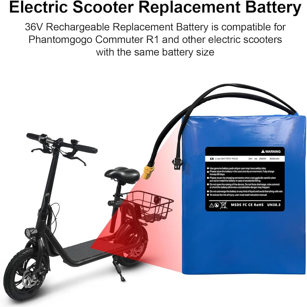36V 8AH Scooter for Battery Phantomgogo R1 مصممة خصيصًا لركاب Phantomgogo R1 (7.68 × 5.12 × 1.5in/195 × 131 × 38 مم). يعمل مع أي 36 فولت سكوتر مطابقة الجهد/التوصيل/الحجم - تحقق من مواصفات البطارية الأصلية قبل الشراء.
