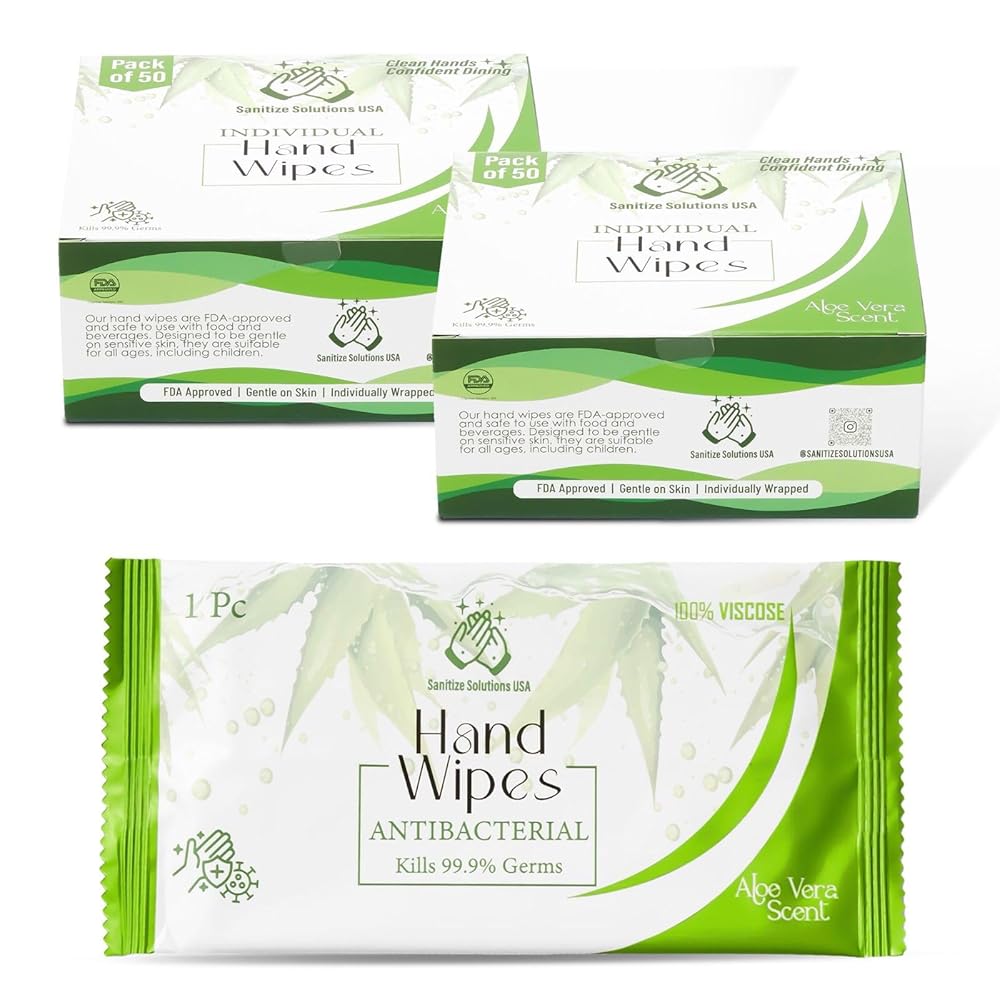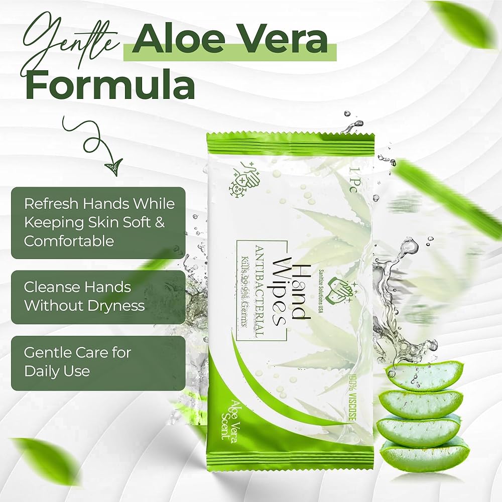 قسط مناديل ملفوفة بشكل فردي - الألوة فيرا | صديق للبيئة ، جاهزة للسفر ، ترطيب (عدد واحد (حزمة 100))