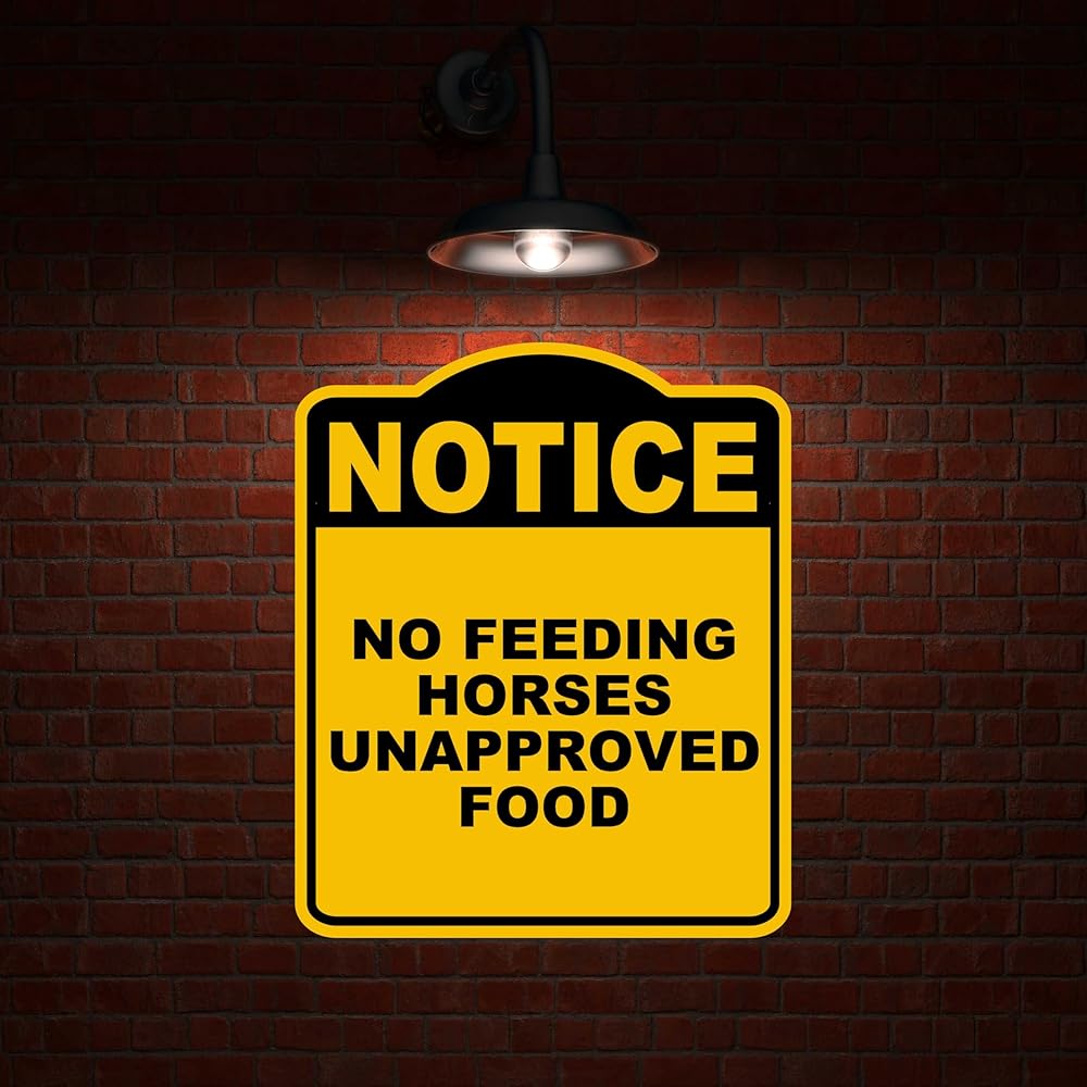 لا توجد خيول التغذية غير الموافق عليها طعام أصفر أصفر سوداء من الألومنيوم المركب 8.5 × 10 بوصات