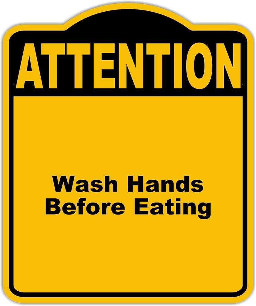 اغسل اليدين قبل أن يأكل الاهتمام علامة مركب من الألومنيوم الأسود الأصفر 8.5 × 10 بوصات