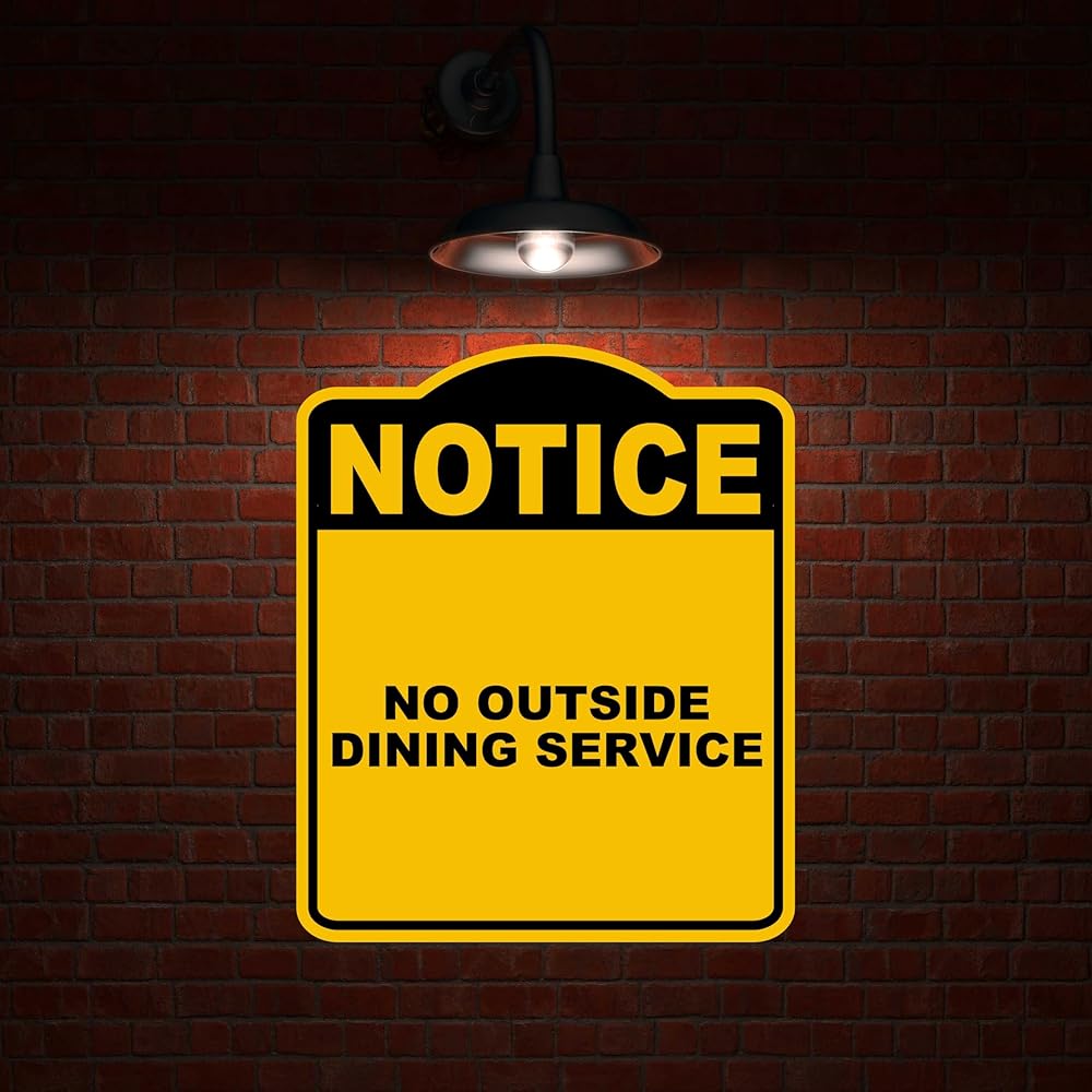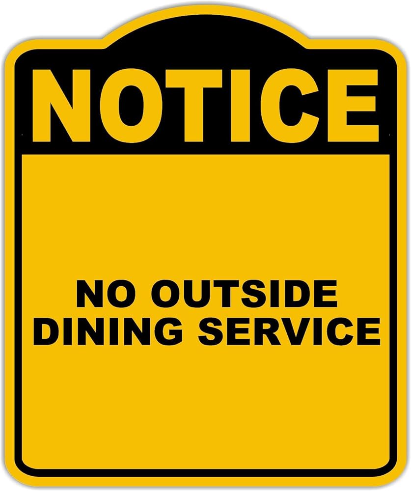 لا توجد خدمة طعام خارجية إشعار، لافتة مركبة من الألومنيوم باللون الأصفر والأسود مقاس 8.5 × 10 بوصة