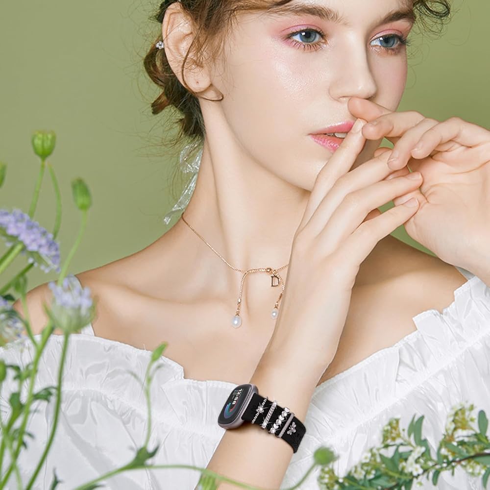 【حلقة زخرفية فاخرة】 oratyfan الأنيقة Fitbit Sense 2 عصابات تأتي مع 5 حلقات معدنية لامعة. هذه الحلقات مصنوعة من المعادن المصنوعة من الناحية المهنية ، وتخصيص حزام الساعات الخاص بك مع ضمان قوة طويلة الأمد. الطول 20 مم والارتفاع 3.5 ملم ، وهو مناسب لمعظم فرق الساعات السيليكون ، مما يعزز مظهر الساعة بأسلوب عصري