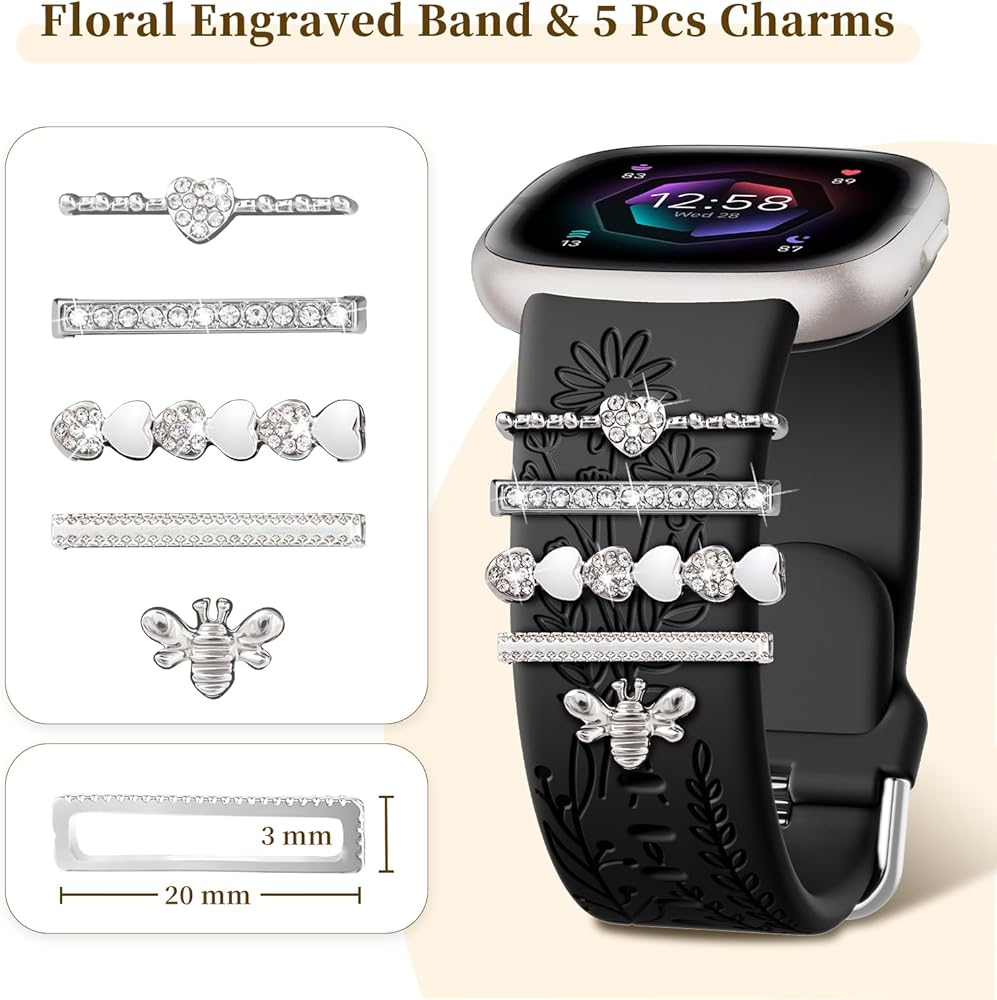 【مجموعة ملحقات الساعات المثالية】 فرقة السيليكون لـ Fitbit Versa 4 Bands for Woman تشمل شريطًا محفورًا الأزهار ، وحلقات زخرفية 5pcs ، وهي مزيج مثالي يضمن العملية ويعزز النداء البصري. مزيج من الألوان والأنماط المختلفة يجعل ملابسك متنوعة. يبدو المظهر الفريد للساعة أكثر حيوية ومذهلة وحديثة ، مما يمنحك المزيد من الإثبات