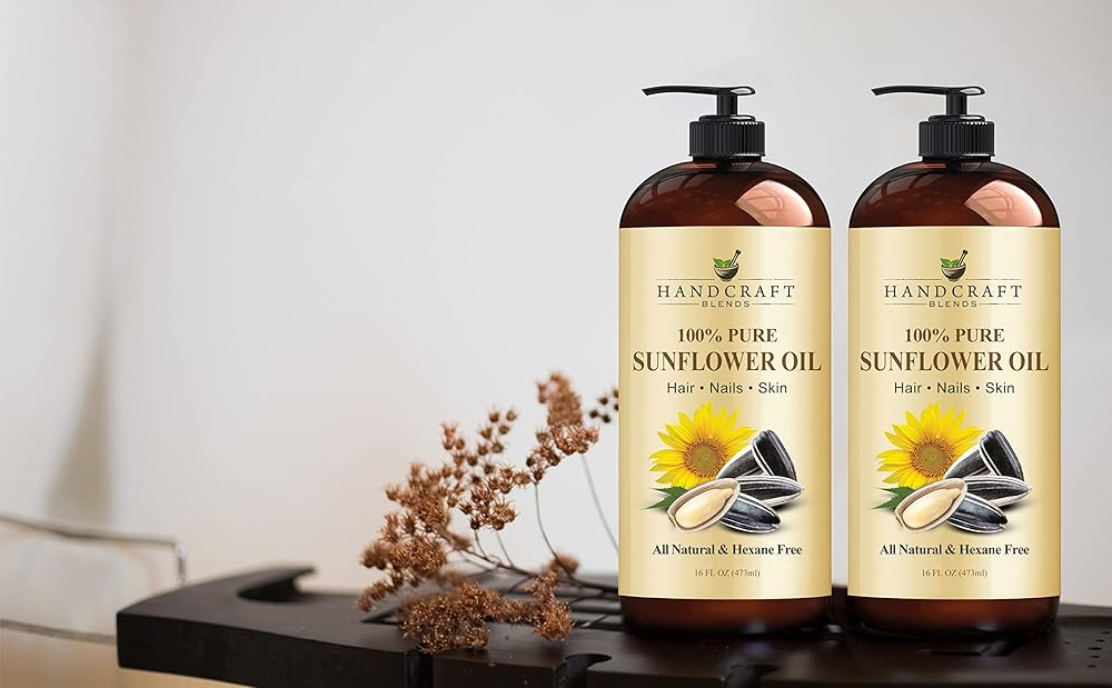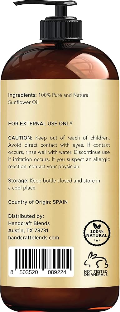 زيت عباد الشمس مصنوع يدويًا - نقي وطبيعي 100% - زيت ناقل مضغوط على البارد عالي الجودة للزيوت العطرية وزيت التدليك وترطيب البشرة والشعر - 16 أونصة سائلة. أوز
