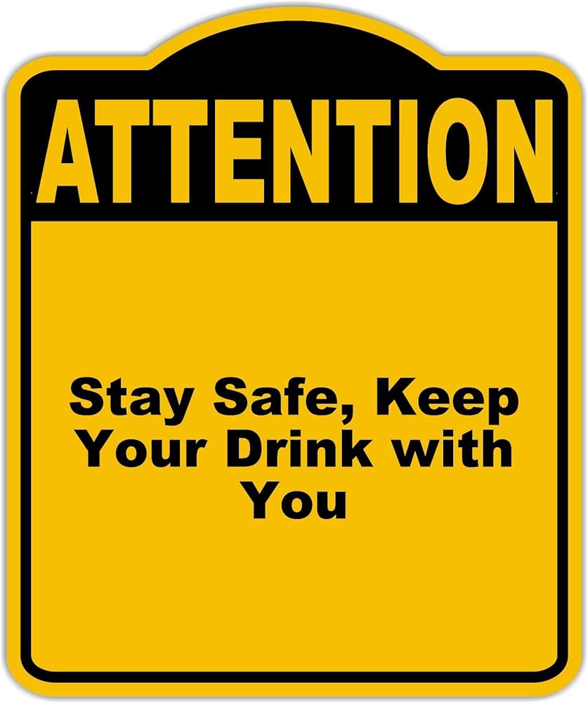 ابق آمنًا ، حافظ على مشروبك مع انتباهك الأصفر الأسود المركب المركب 8.5 × 10 بوصات
