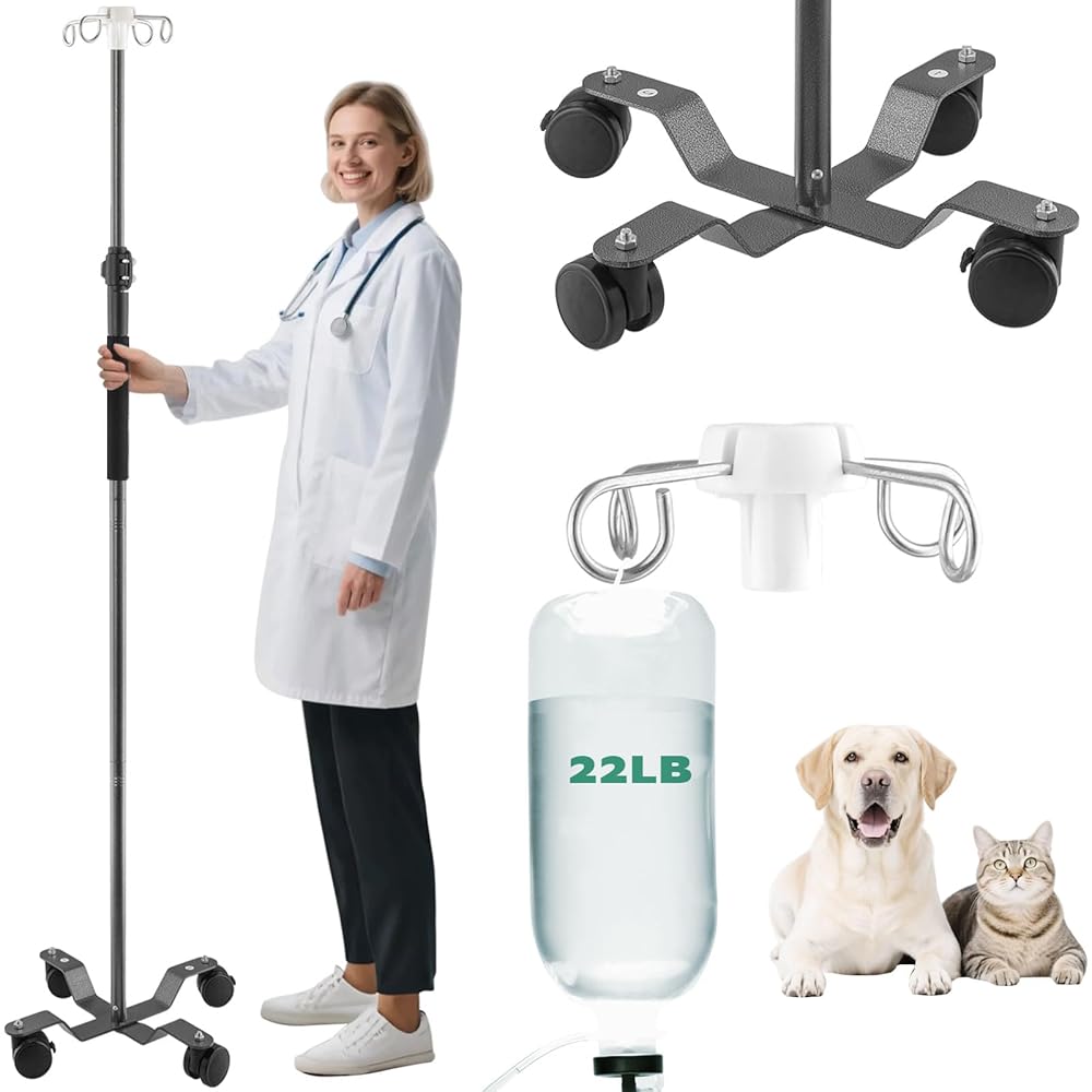 • 【Multi-purpose Use】IV pole with wheels is not only suitable for home use, hospitals used to hang infusion bags for infusion, but also suitable for hanging items, also suitable as a tool for school skills testing, feeding tube stand also suitable for hanging water bags used to give a bath to people who are not feeling well. Infusion Portable IV Pole not only suitable for human use, but also suitable for small and medium-sized dogs, cats infusion, suitable for cat and dog shelters and pet stores.