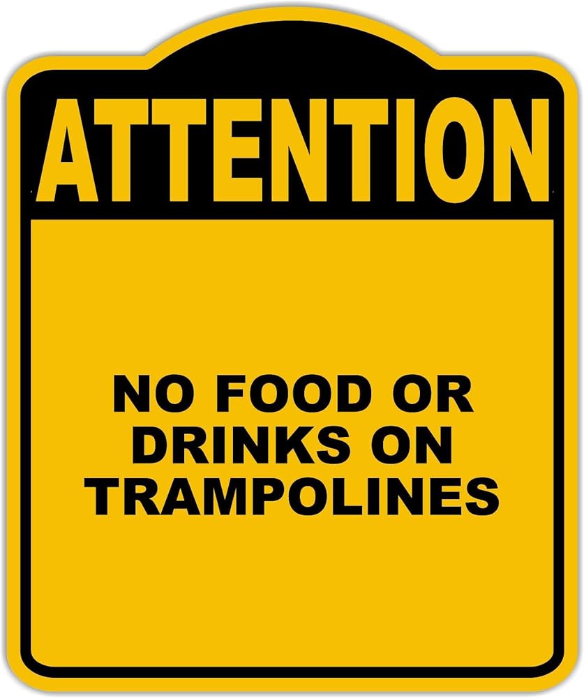 لا يوجد طعام أو مشروبات على الترامبولين انتباه أصفر أسود مركب مركب 8.5 × 10 بوصات