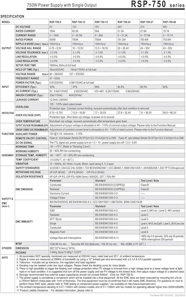 RSP-750 series RSP-750-12 RSP-750-24 RSP-750-48 Switching power supply 24V/5V/12V/15/27/48V ultra-thin 55V high-power