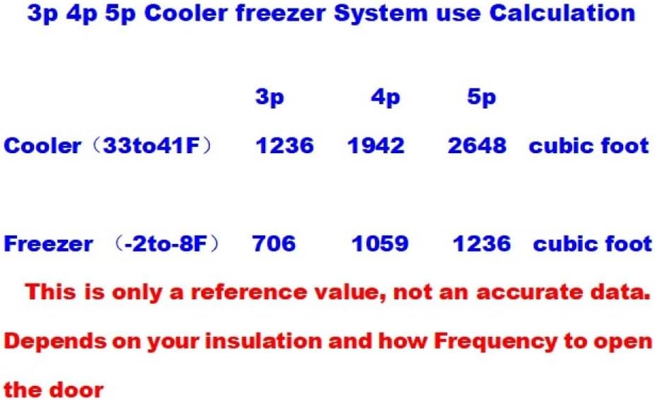 سعة التخزين: تستوعب ما يصل إلى 1942 قدمًا مكعبًا من مساحة التخزين بتكوين 4p ، وهو مثالي لاحتياجات التبريد على نطاق واسع. كيفية حساب مقدار قدرة التبريد التي يحتاجها الضاغط: أولاً: المنزل المختوم (أكثر ختمًا) ، ثانياً: سعة التبريد. يتم تخفيض مبرد المشي إلى 35F (درجة الحرارة التي تحتاجها) في 15 دقيقة إن لم يكن ، وسعة التبريد أكثر والمزيد من الآلات يجب إضافتها