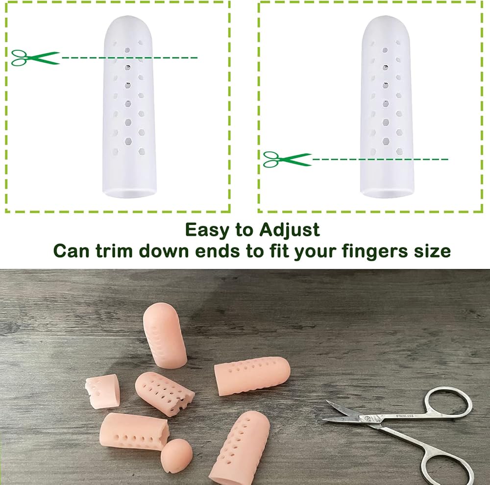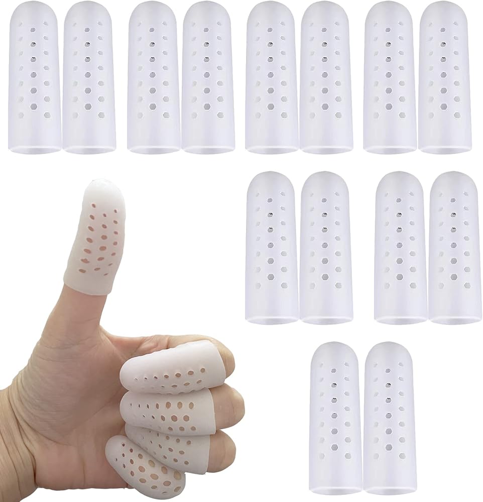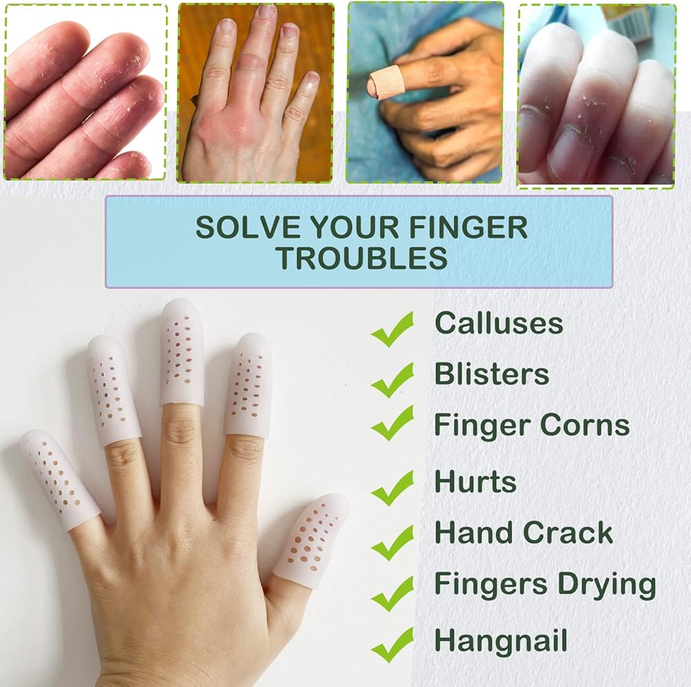 👍 راحة وحماية فورية - يحمي واقي الأصابع أصابعك من الاحتكاك والضغط والتهيج. يساعد على تخفيف التهاب المفاصل في الأصابع، والذرة، والبثور، والكالو، وتشقق الأصابع، والتهاب الجلد، وخدر الأصابع، والتهاب المفاصل في الأصابع.