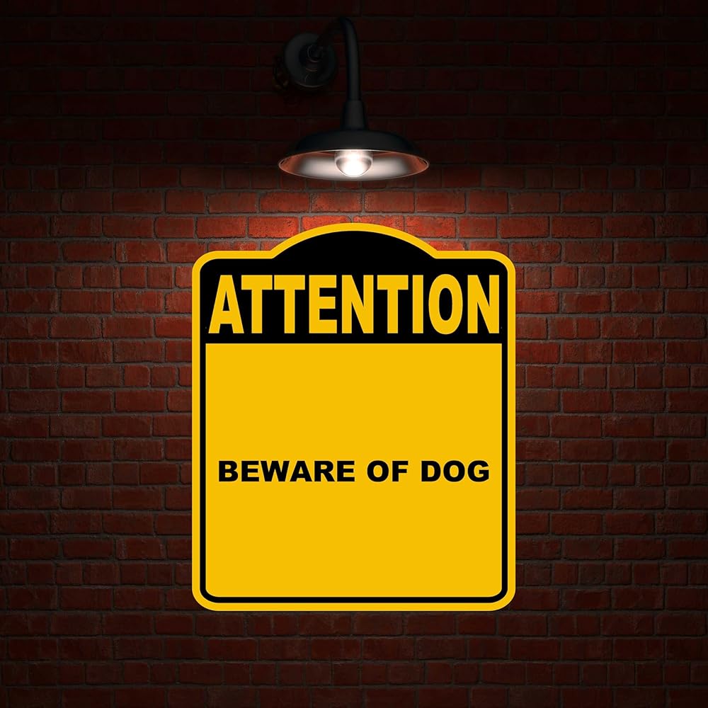 احذر من الكلب، لافتة مركبة من الألومنيوم باللون الأصفر والأسود مقاس 8.5 × 10 بوصة