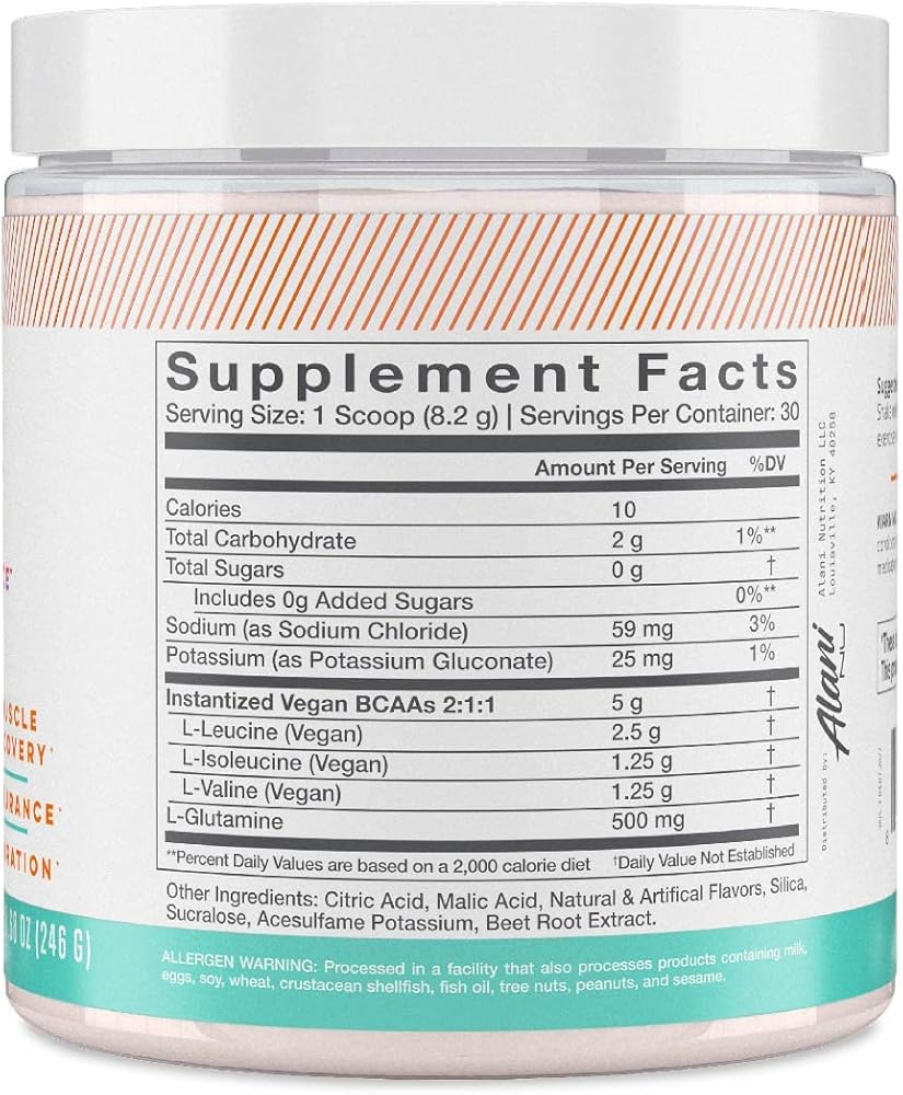 نسبة Bcaa 2:1:1: يقدم مزيجًا من مزيج InstAminos النباتي - 2.5 ليوسين، 1.25 آيزوليوسين، 1.25 فالين