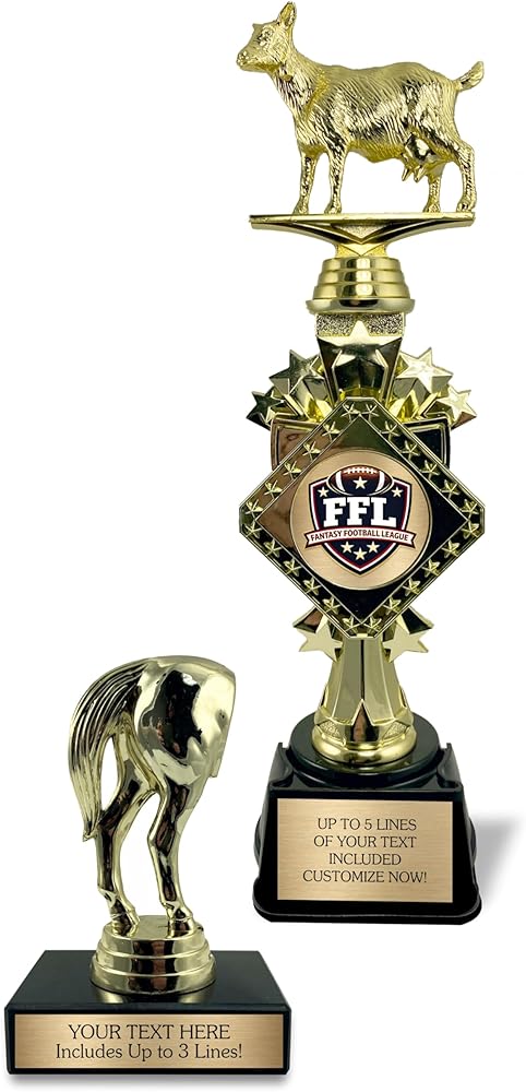 THE GOAT AND HORSE BUTT - The set includes an engraved greatest of all time trophy as well as the not so coveted horse's rear end trophy for that last place finisher or loser award