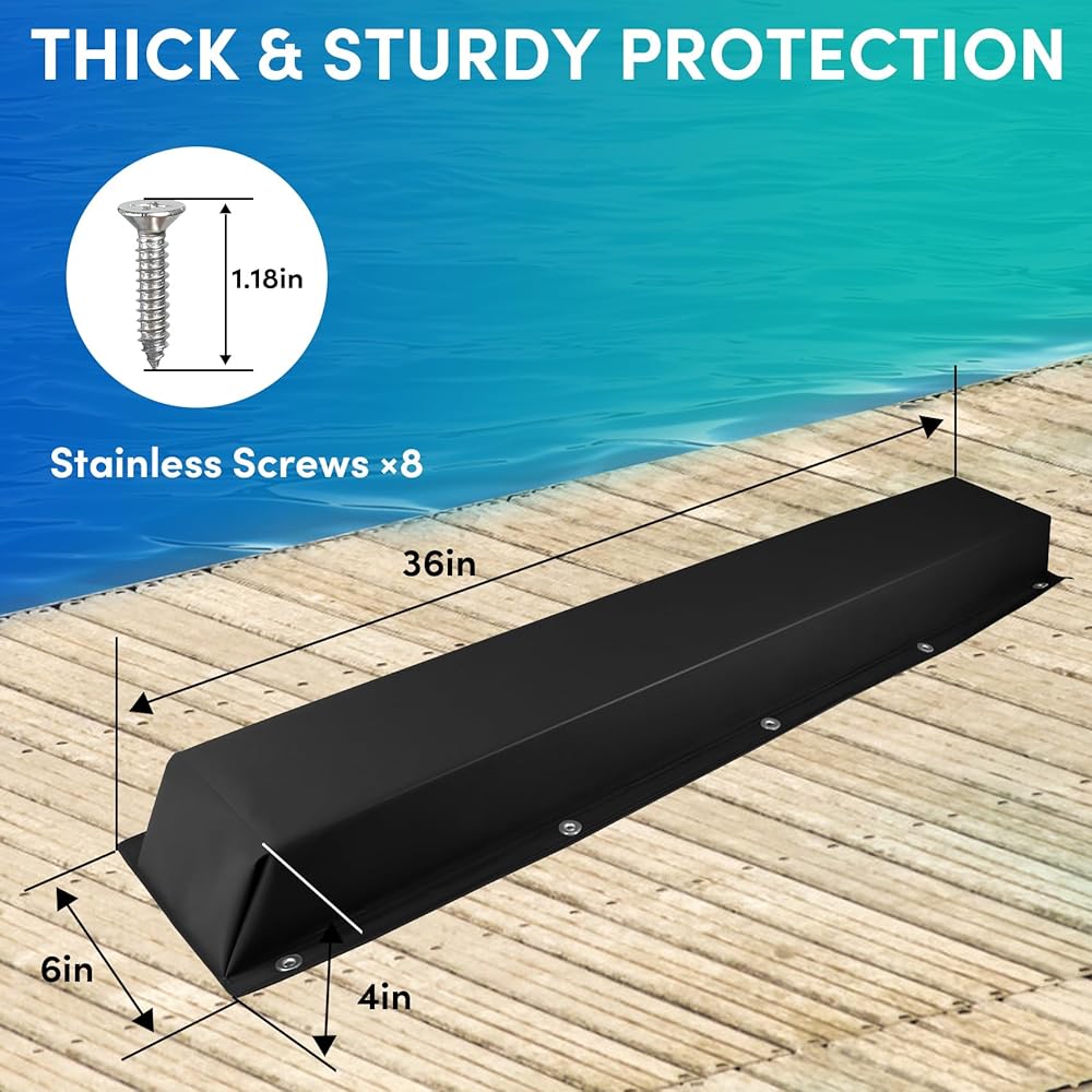 • 【Multiple Size and Color Options 】The dock bumpers for docking measures 48 x 6 x 4 inches. Available in four sizes (36in, 48in, 59in, 72in) and four colors (white, black, grey, blue), you can easily select the perfect size and color of dock pole bumpers to meet your needs