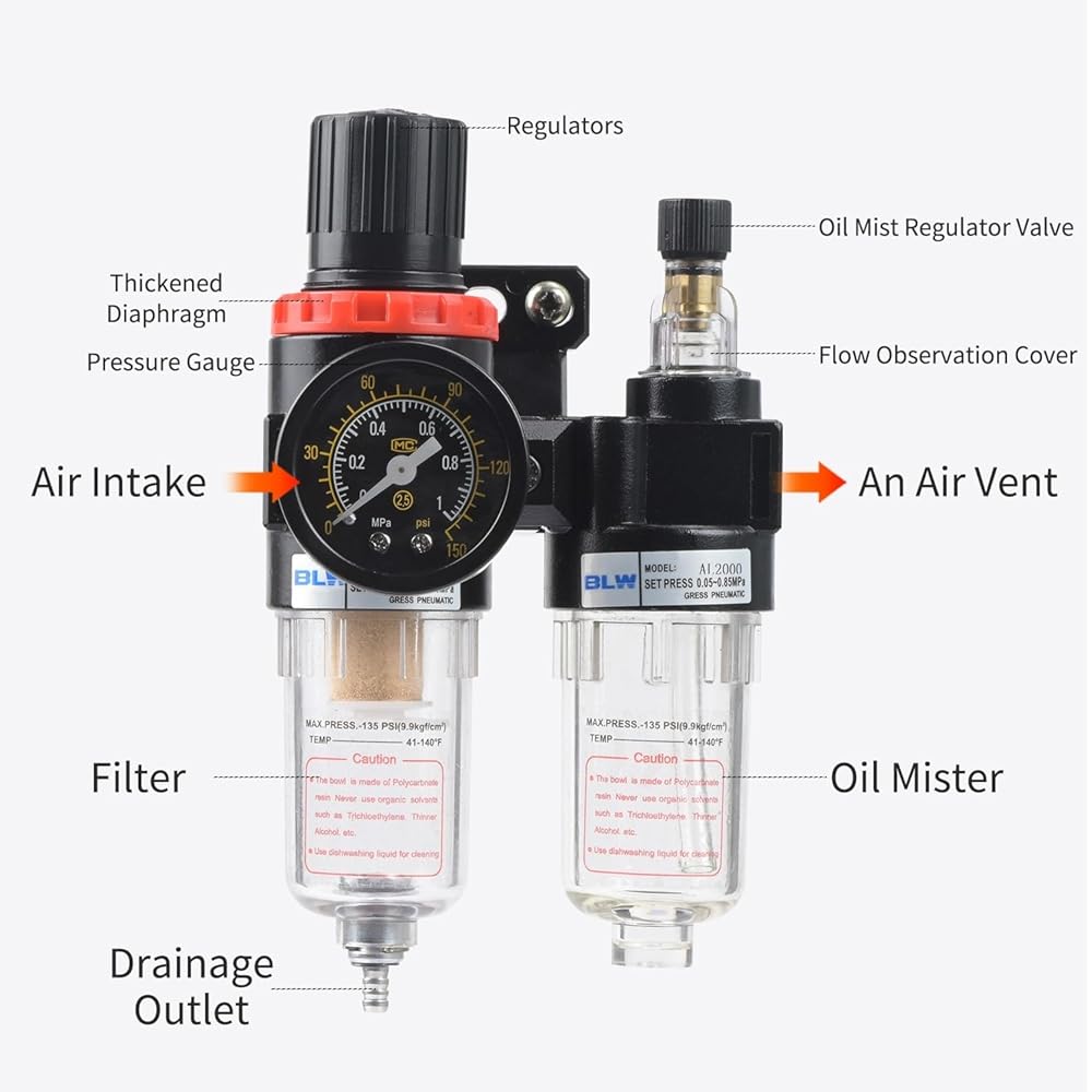 AFC2000 AFR2000 + AL2000 G1/4 Air Compressor Oil And Water Separator Air Filter Is Used To Reduce The Pressure Valve Regulator