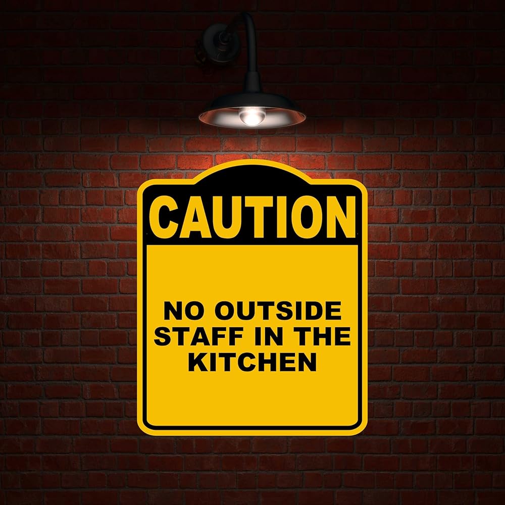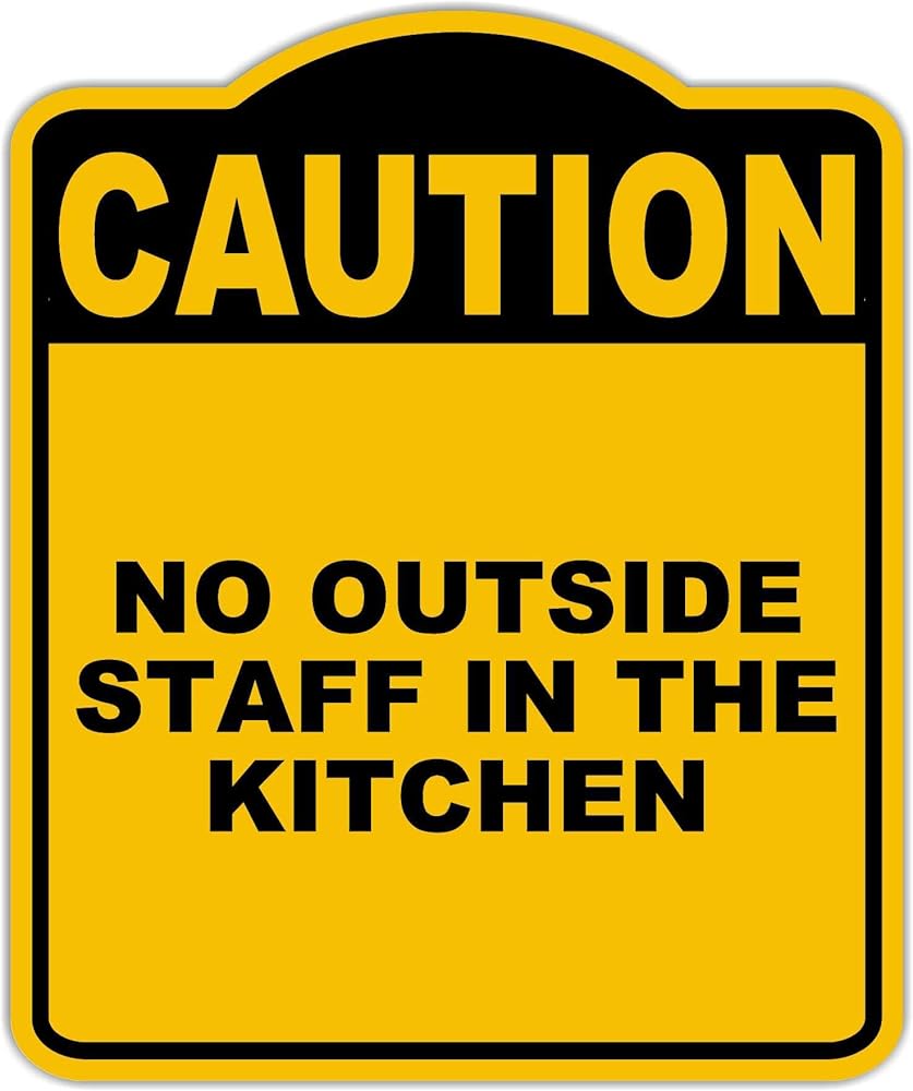 لا يوجد موظفون خارجيون في المطبخ يحذر أصفر أسود من الألومنيوم المركب 8.5 × 10 بوصات