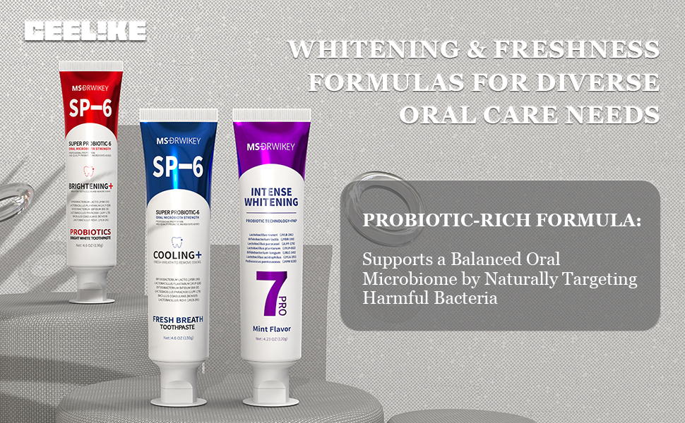 SP-6 معجون الأسنان مع 6 بروبيوتيك: تجربة تبييض طبيعي مع معجون الأسنان SP-6 ، ويتميز 6 بروبيوتيك قوي يعزز صحة الفم ، والتنفس الطازج ، وحماية المينا.