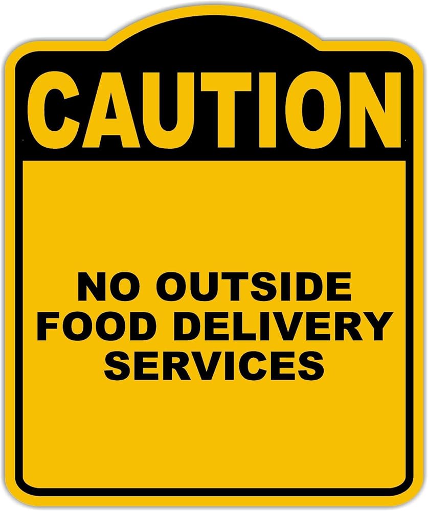 لا توجد خدمات توصيل طعام خارجية تحذير، لافتة مركبة من الألومنيوم باللون الأصفر والأسود مقاس 8.5 × 10 بوصة