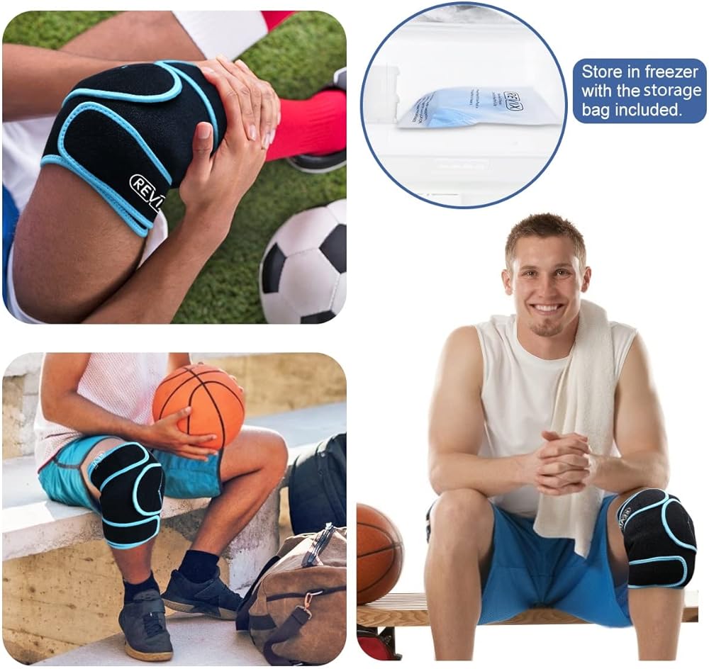 عبوات ثلج مرنة وقابلة لإعادة الاستخدام ومتينة - يمكن أن تبقى عبوات الثلج ذات نقطة ثلج منخفضة (-77 درجة فهرنهايت) ناعمة ومرنة عند التجميد، يمكنك تخزينها في الفريزر مع الكيس البلاستيكي المرفق بحيث تكون جاهزة للاستخدام. الحافة العريضة محكمة الغلق وغطاء النايلون السميك للغاية يمكن الاعتماد عليهما لإعادة الاستخدام دون القلق بشأن تسرب الجل. لفافة الركبة بفعالية للمساعدة في التهاب المفاصل ومشاكل الرضفة وإصابات الغضروف المفصلي وآلام الركبة المزمنة والالتواءات والإصابات الرياضية وغير ذلك الكثير.