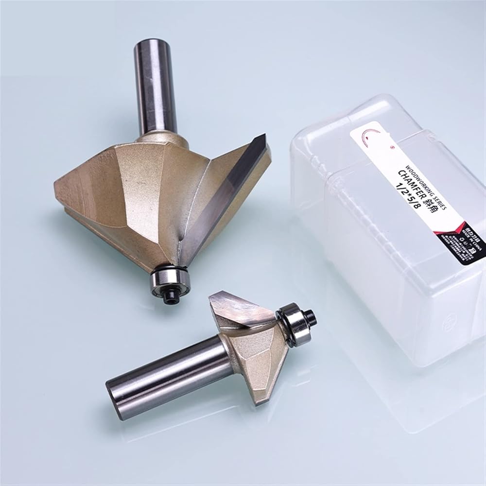 Bevel Chamfer Trouter Bit Beating 45 درجة تقليص تقليم مدبب خشب الخشب DIY أداة طحن الخشب 1/2 1/4 حصان الأنف 1pcs (الحجم: 1-2x3-8 (45deg))