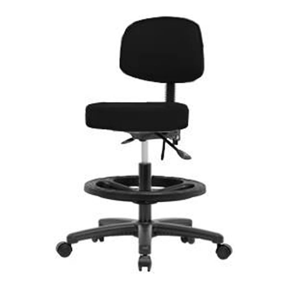 The product Type is vinyl medium Bench height stool with back and black nylon base, no tilt, black foot ring, casters, Burgundy. Country of origin is United States, manufacturer of this product is Thomas.