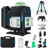 مستوى الليزر مع ترايبود ، 4 × 360 درجة التسوية الذاتية 16 خط ليزر الأخضر 4D ، مزود بتطبيق Bluetooth والتحكم عن بعد. أداة المستوى مع بطارية 6000 مللي أمبير في الساعة قابلة لإعادة الشحن