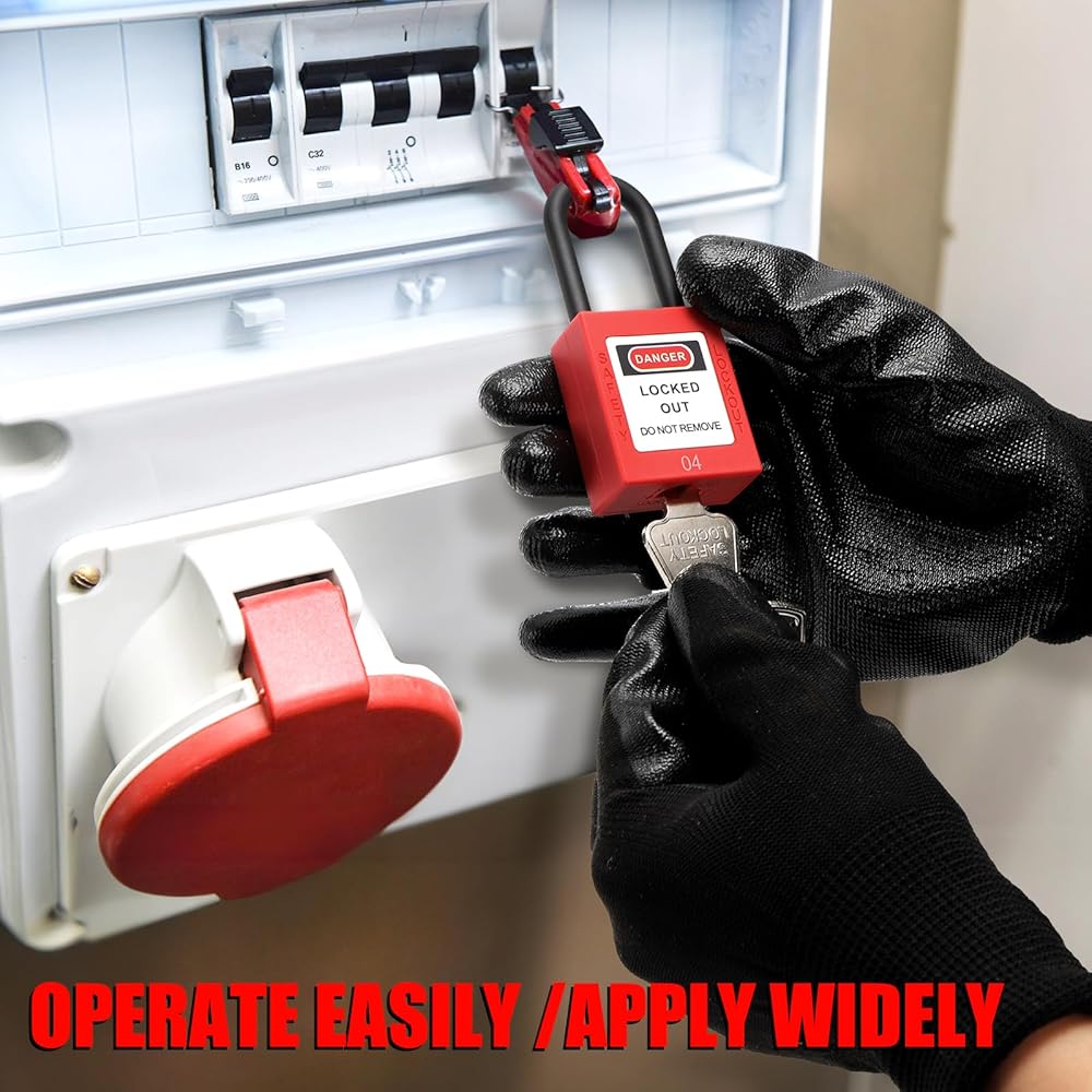 يتم اختبار مجموعة أقفال الوهجة القفل بدقة لتلبية معايير OSHA لضمان التحكم السليم في الطاقة الخطرة. ويتم إرفاق علامة قابلة للكتابة إلى الجزء الخلفي من القفل لسهولة الإدارة.