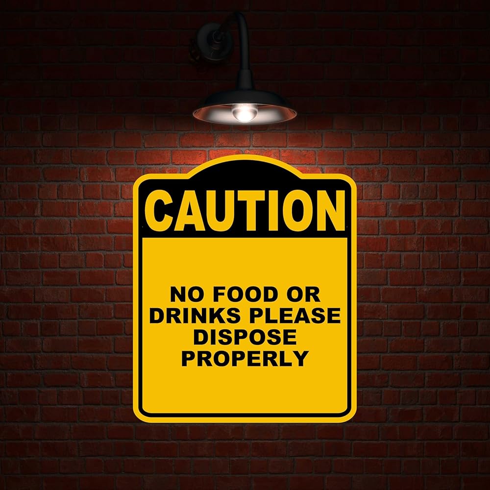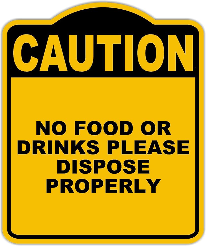 لا يوجد طعام أو مشروبات ، يرجى التخلص من الحذر الصفراء الصفراء المركب الأسود المركب 8.5 × 10 بوصات