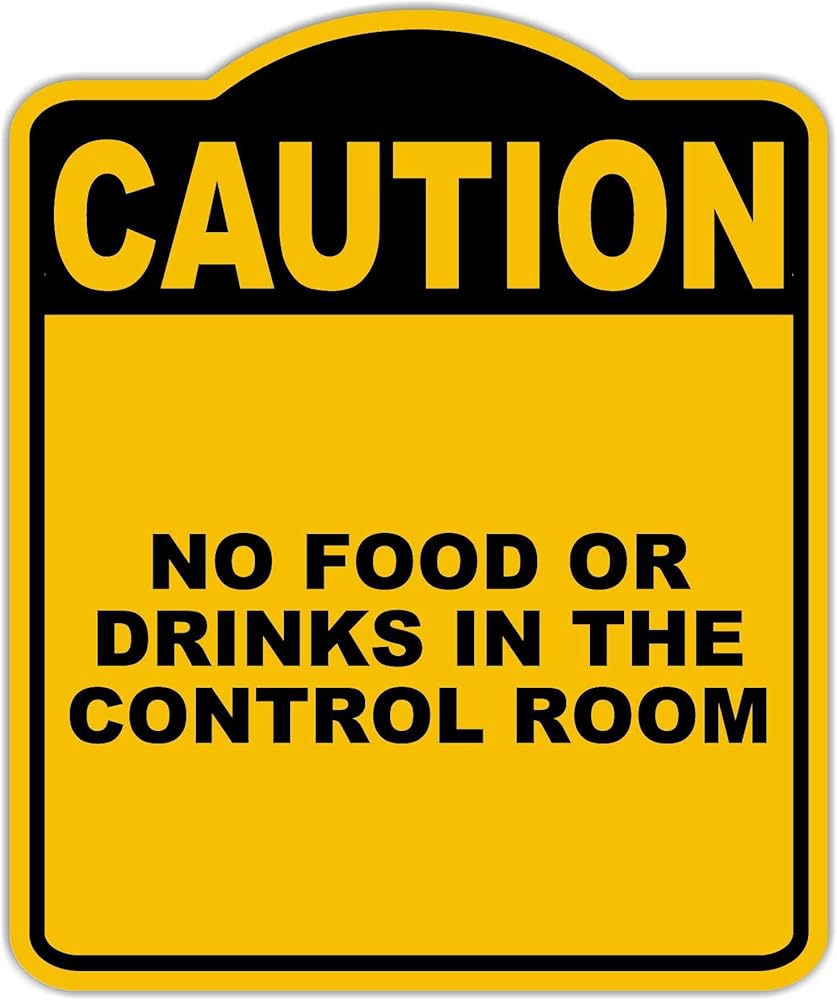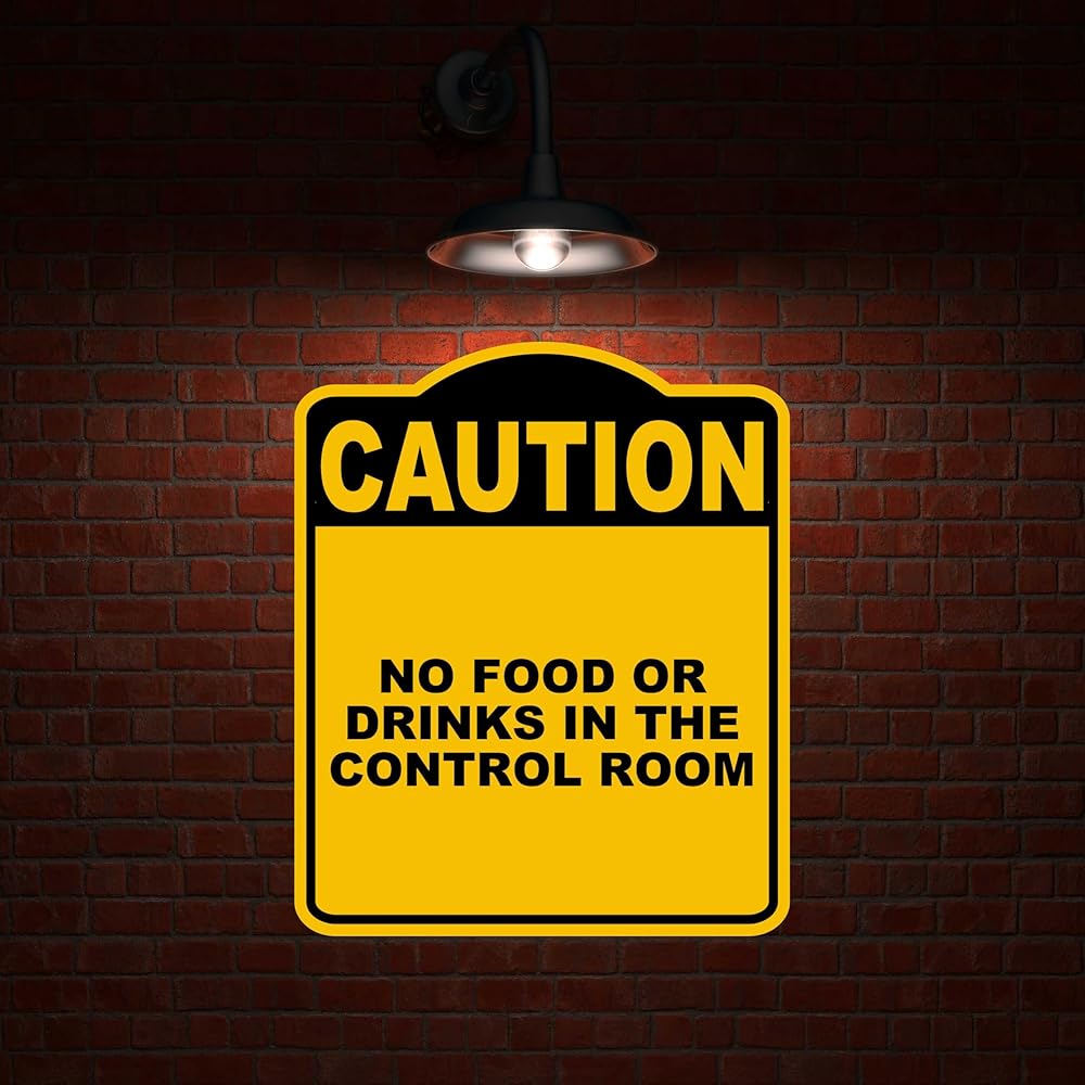 لا يوجد طعام أو مشروبات في غرفة التحكم تحذير أصفر أسود الألومنيوم المركب 8.5 × 10 بوصات