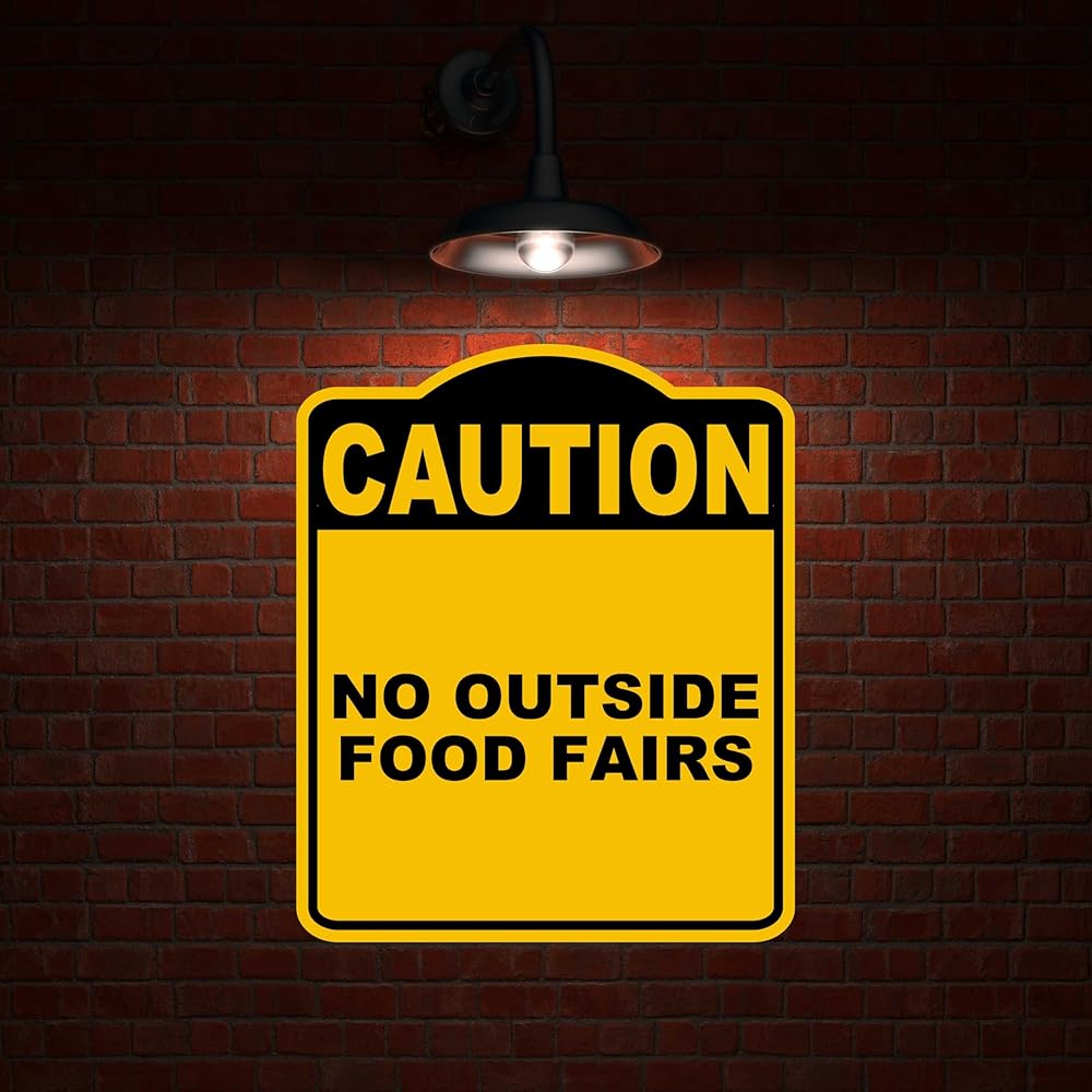تحذير من عدم وجود معارض طعام خارجية، لافتة مركبة من الألومنيوم باللون الأصفر والأسود مقاس 8.5 × 10 بوصة