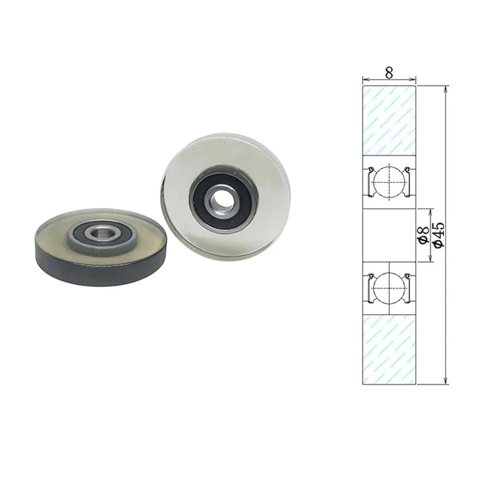 2pcs 8x45x8 628RS Soft Rubber Bearings OD 45 mm Polyurethane Mute deep groove bearing pulleys