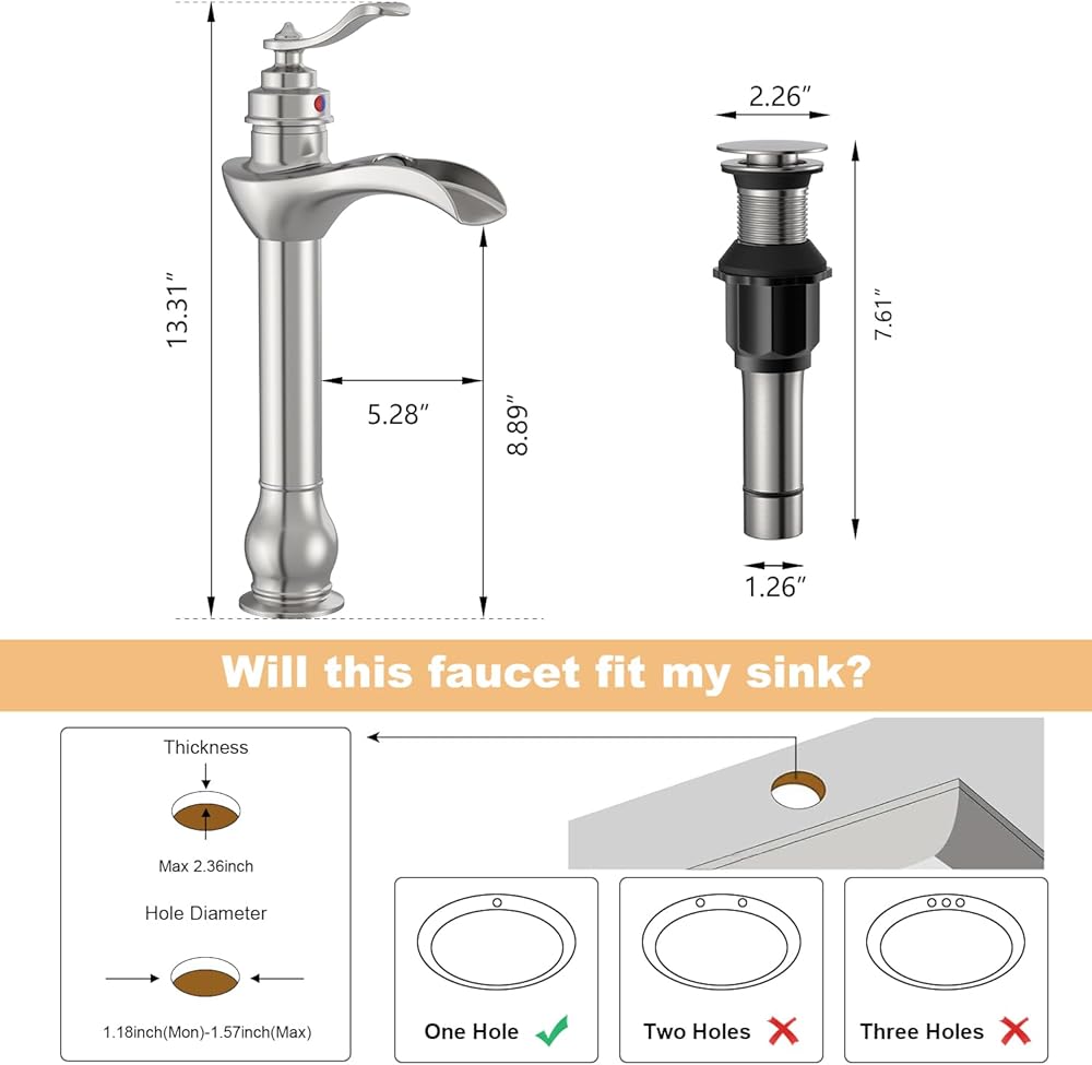 من السهل التنظيف والتثبيت: من السهل التنظيف والتثبيت هذا الصنبور ذو الفتحة الواحدة. تصميم موجز يجعل من السهل تثبيت وتنظيف صناديق الشلال الشفاهية الطويلة.