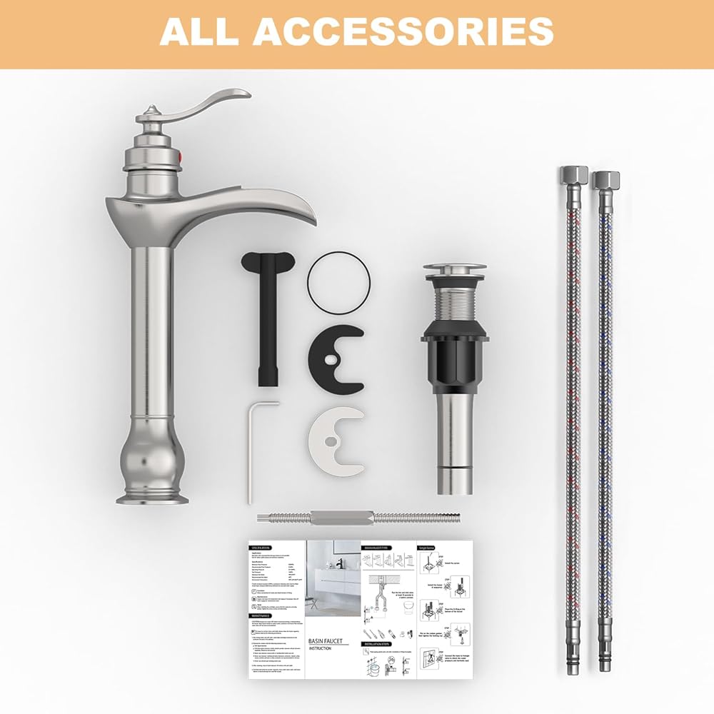 كل ما في الحزمة: تتضمن الحزمة جميع أجزاء من صنبور الحمام ، وتعليمات التثبيت ، وأدوات التثبيت ، وخط إمدادات المياه 2/8 بوصة ، وأجهزة تصريف وتثبيت منبثقة واحدة. التثبيت مريح وسريع. يمكنك تثبيته بنفسك بدون سباك.