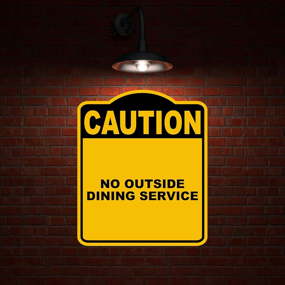 لا توجد خدمة طعام خارجية تحذير أصفر أسود من الألومنيوم المركب 8.5 × 10 بوصات