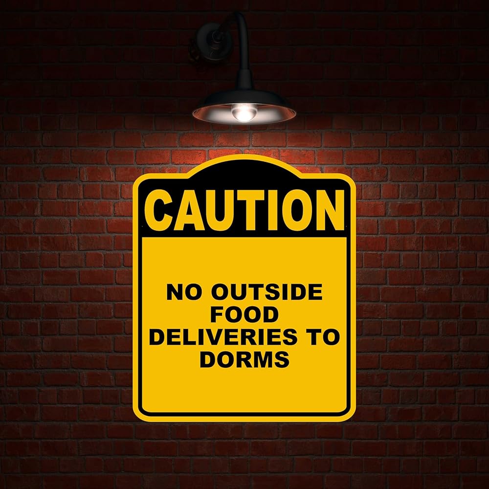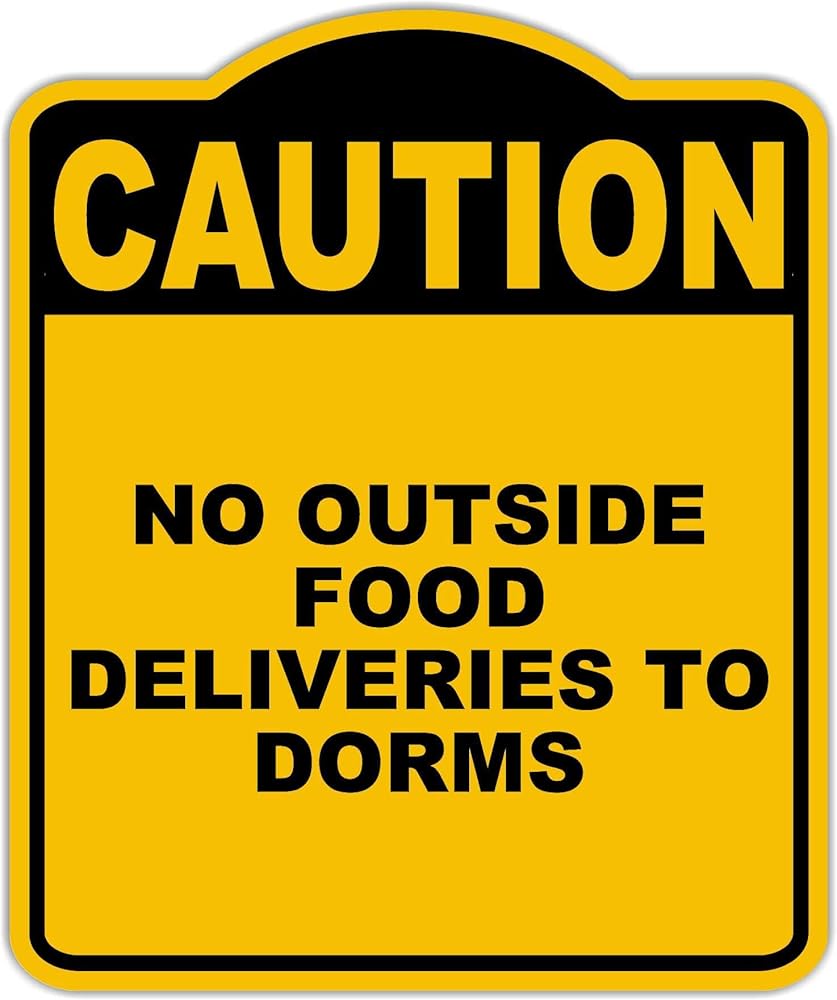 لا يوجد توصيل طعام خارجي إلى مساكن الطلبة تحذير، لافتة مركبة من الألومنيوم باللون الأصفر والأسود مقاس 8.5 × 10 بوصة