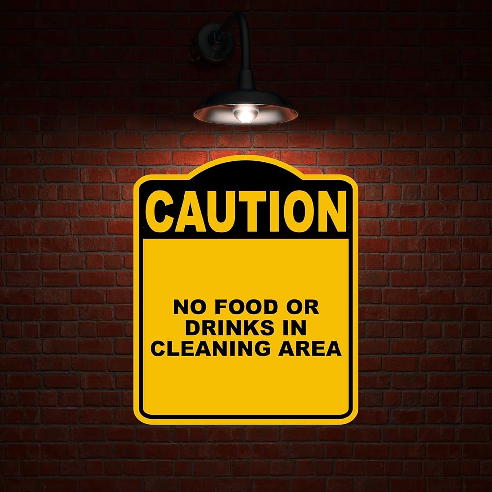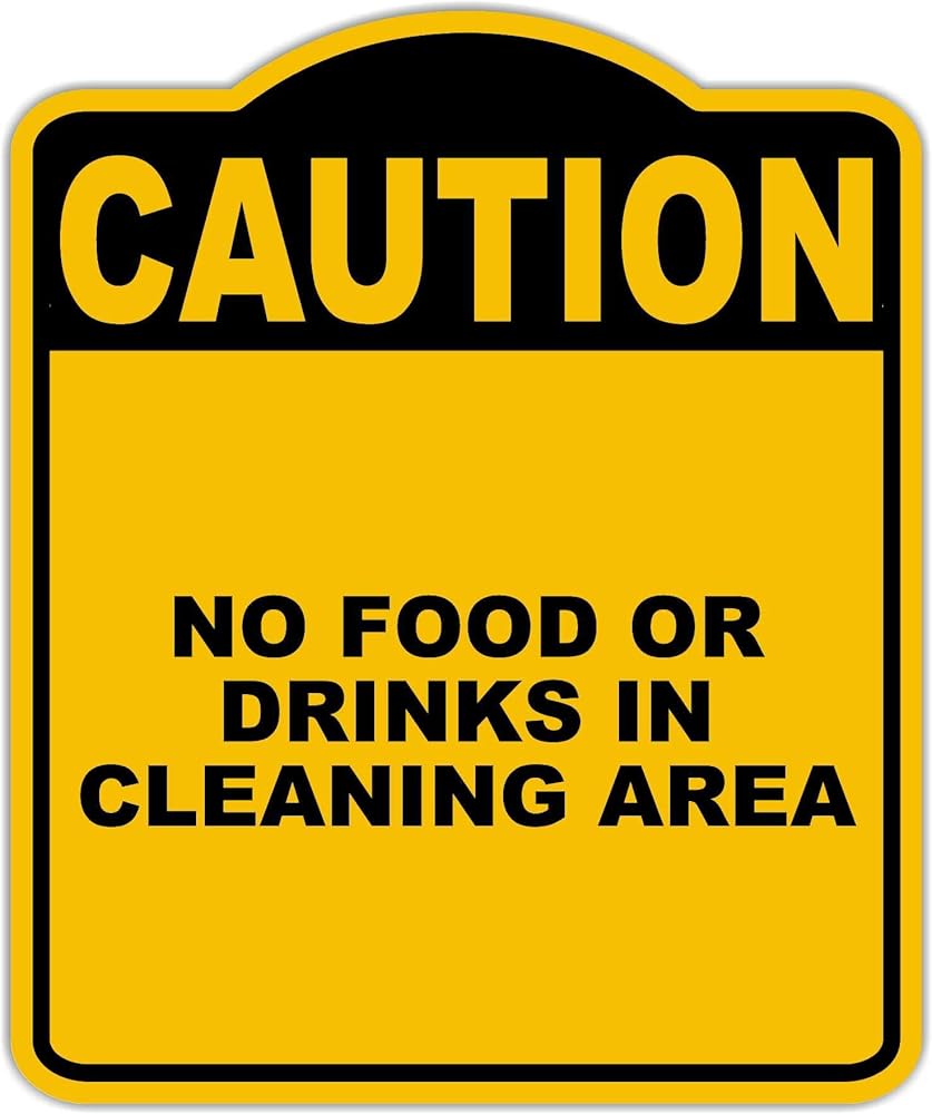 ممنوع تناول الطعام أو المشروبات في منطقة التنظيف، تحذير، لافتة مركبة من الألومنيوم باللون الأصفر والأسود مقاس 8.5 × 10 بوصة
