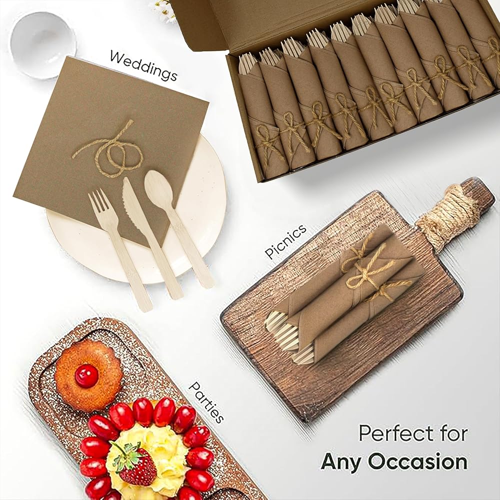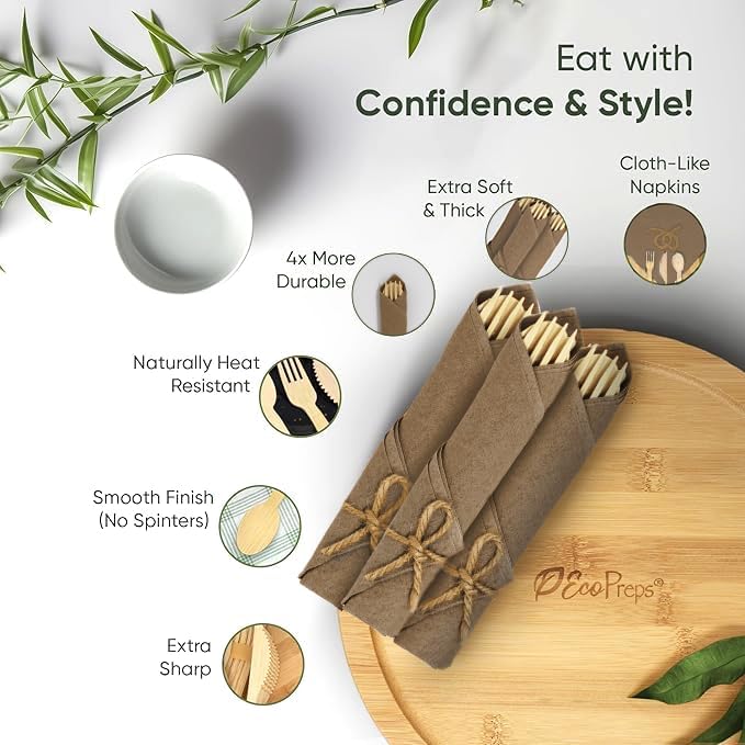 الفخامة بشكل طبيعي: تستخدم مجموعة أدوات أدوات أدوات من المناديل البنية الممتازة التي يتم تخصيصها مسبقًا أواني الخيزران الطبيعية بنسبة 100 ٪ والمناديل الراقية الناعمة والسميكة التي تشعر وكأنها بياضات. المجموعة خالية من البلاستيك وخالية من المواد الكيميائية-آمنة لأي وجبات أو مناسبة فاخرة!