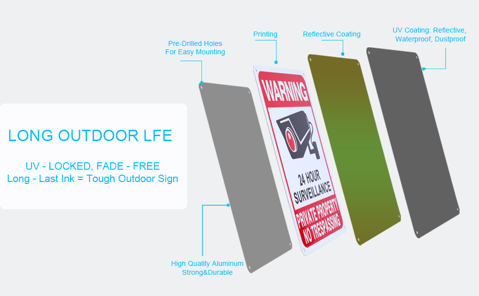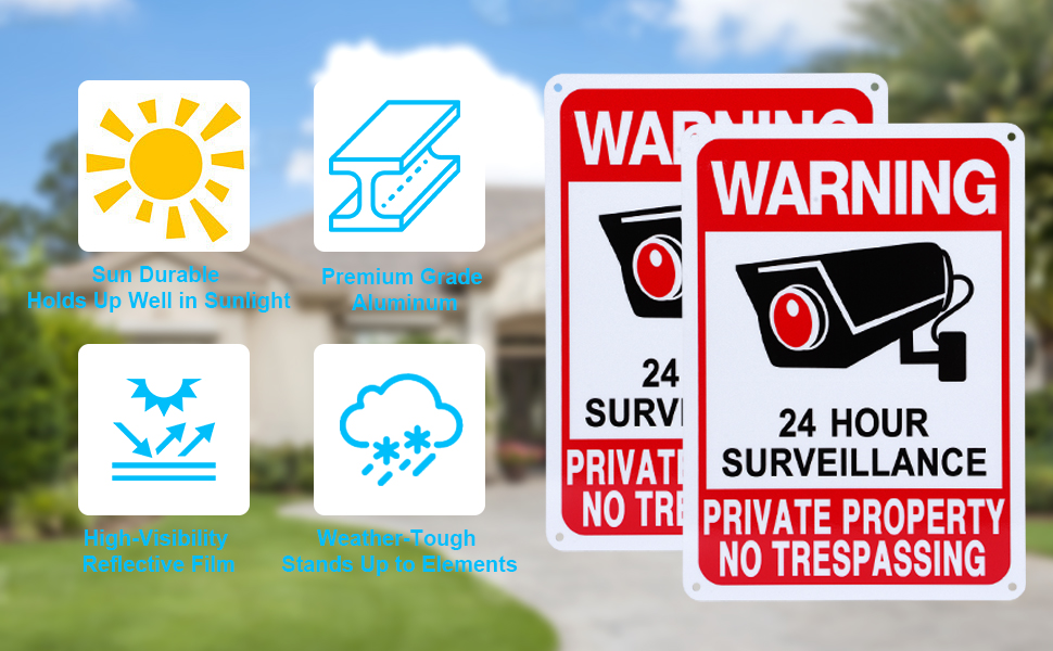 • 【من السهل القراءة】 علاماتنا التي لا تتعدى على ممتلكات الممتلكات الخاصة بتراجع المتسللين مع مراسلة حظر واضحة - مما يؤدي إلى أيقونة كاميرا جريئة ، مرئية من الشارع ، لذلك لن يقترب الضيوف غير المدعوين من سياجك. استمتع براحة البال الآمنة.