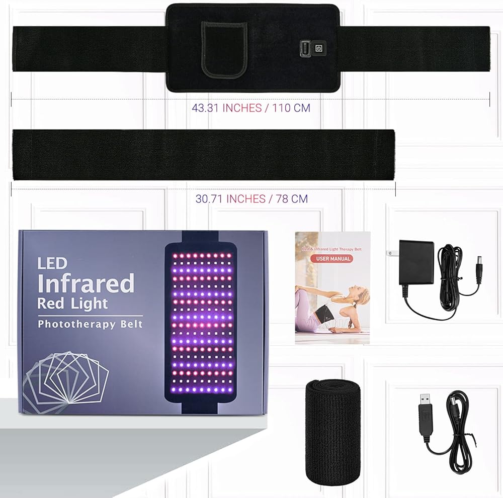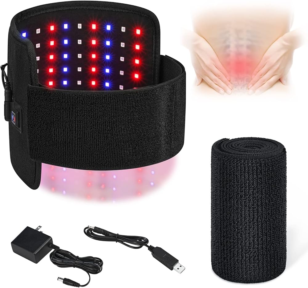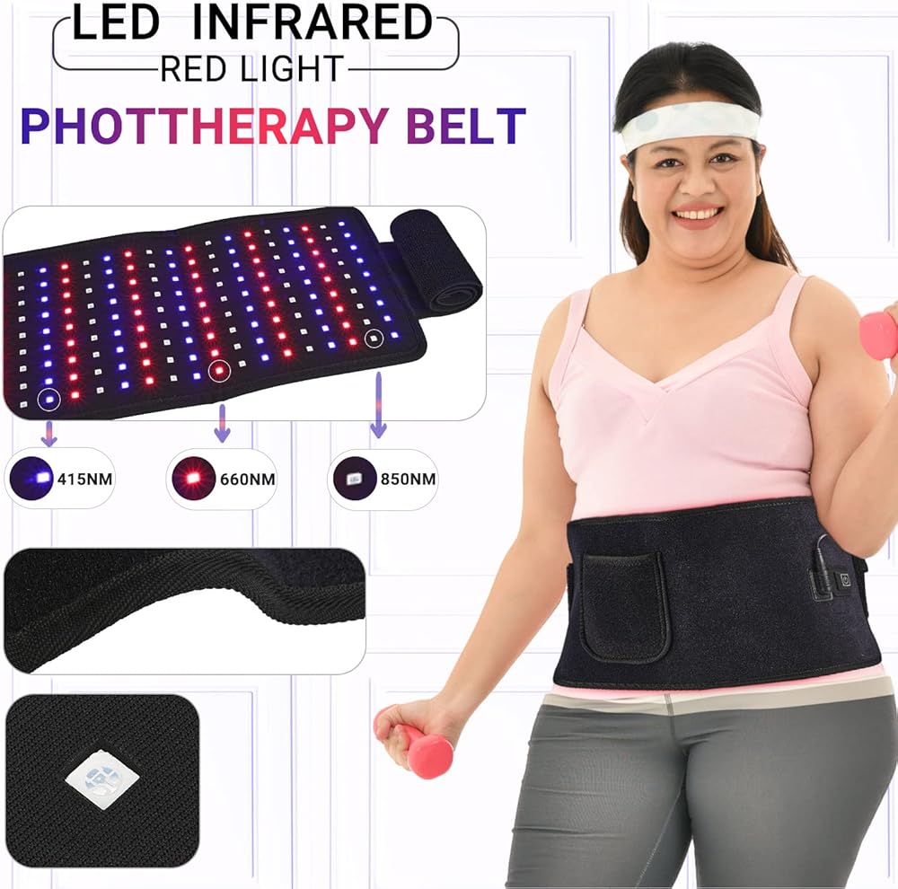 حزام علاج بالضوء الاحمر من ال بي اس ايه اف بي مع ضوء ازرق 415 نانومتر بالاشعة تحت الحمراء 660 نانومتر و850 نانومتر، حزام علاج مرن قابل للارتداء لتخفيف الام المفاصل والكتف والظهر وتخفيف الام العضلات
