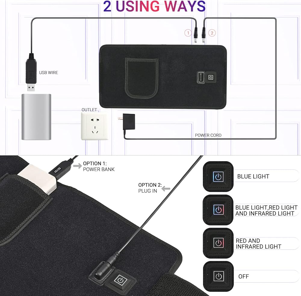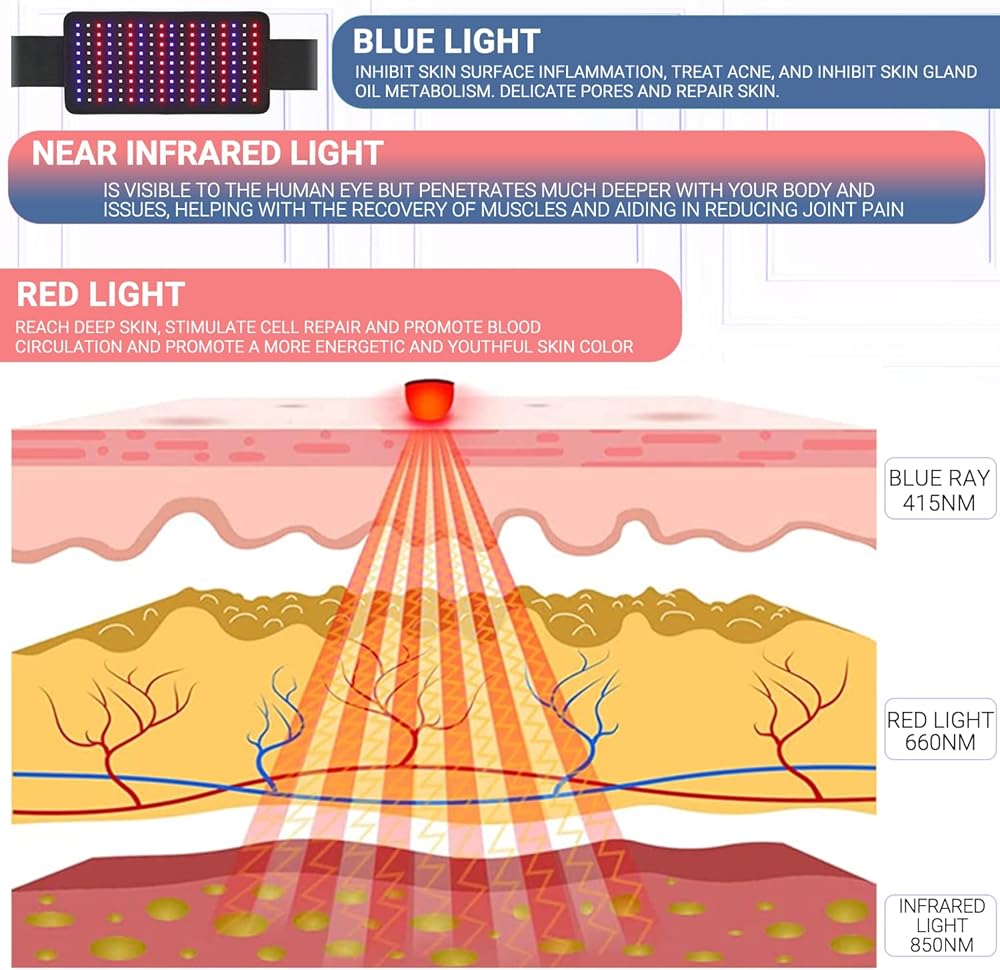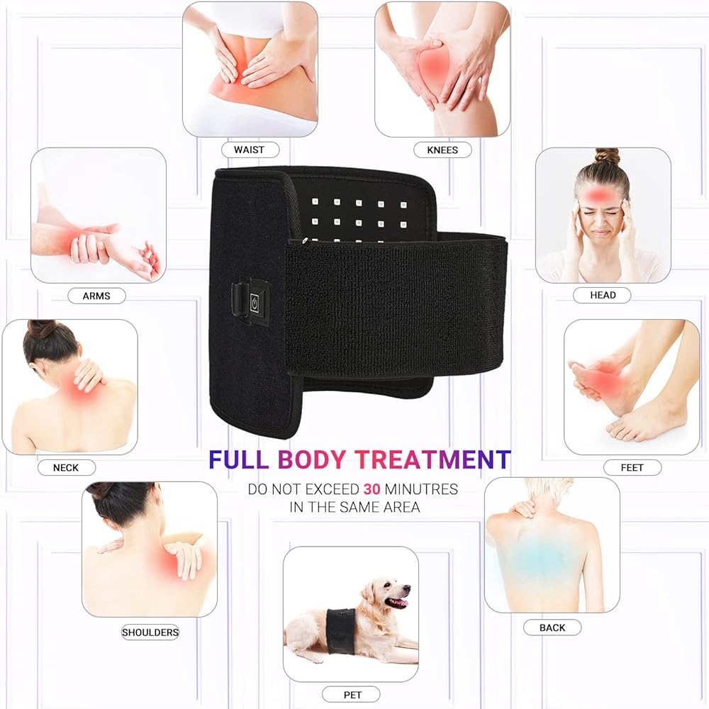 حزام علاج بالضوء الاحمر من ال بي اس ايه اف بي مع ضوء ازرق 415 نانومتر، بالاشعة تحت الحمراء 660 نانومتر، 850 نانومتر، حزام علاجي لتخفيف الآلام، وسادة علاج عميق مرنة قابلة للارتداء لمفاصل الظهر والكتف وتخفيف آلام العضلات