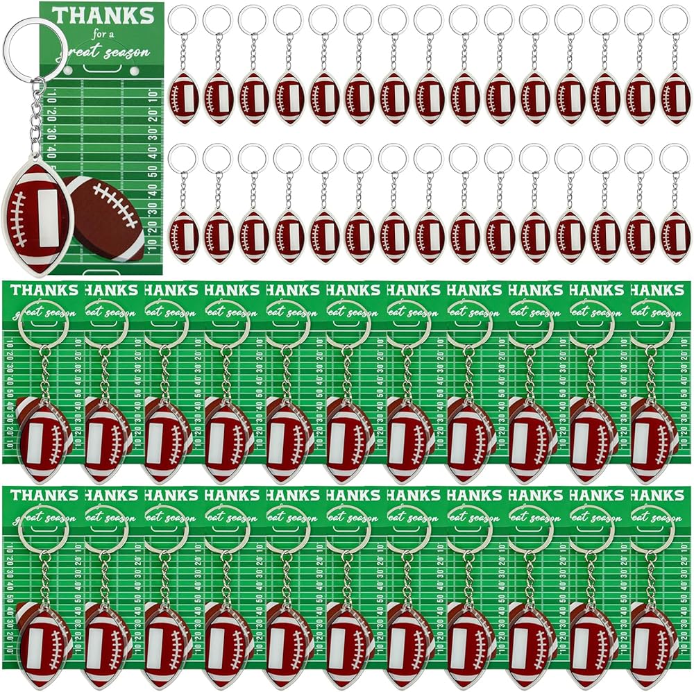 مواد موثوقة: مصنوعة من مواد مفاتيح كرة القدم مصنوعة من مواد أكريليك ، والتي ليس من السهل كسرها وتشوه وتتلاشى ، وهي بطاقات كرة القدم مصنوعة من الورق المقوى ، مطبوعة بوضوح بكلمات الشكر لموسم رائع ، وهو الخيار الرائع لمحبي كرة القدم.